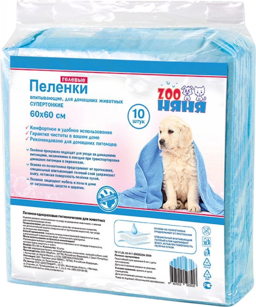 ZOO Няня Пеленки гелевые впитывающие для животных