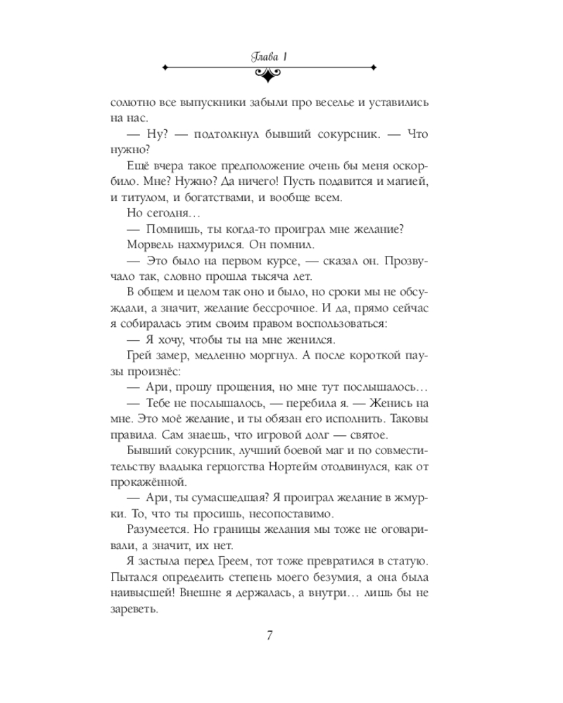 💳 Оплатить за товар можно при получении 🇰🇿 Есть бесплатная доставка по Казахстану от 1 дня 🎁 Копите бонусы с каждой покупки Серия: Фэнтези миры Анны Гавриловой Я? Замуж за этого невыносимого типа? Никогда! Он худший из мужчин. И даже герцогский титул и статус одного из самых перспективных боевых магов империи его не извиняет. Никогда! Но вот мы стоим перед алтарём, и я уверенно подтверждаю желание связать себя узами брака. Инициатива моя. Жених явно хочет придушить, но молчит, потому что, невзирая на все разногласия, я обещала быть хорошей женой. Других причин жениться на девушке, которую он терпеть не может, у него, разумеется, нет! Или есть? |