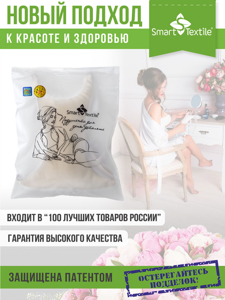 Подушечка для зоны декольте «Женский каприз» — омоложение и забота о вашей красоте. Встречайте инновационную новинку — подушечку для зоны декольте «Женский каприз», созданную для сохранения молодости, гладкости и здоровья вашей кожи. Это не просто аксессуар для сна, а эффективное решение, отмеченное победой в конкурсе «100 лучших товаров России». Уже тысячи женщин активно используют подушечку «Женский каприз» и отмечают позитивные изменения буквально за несколько дней применения.