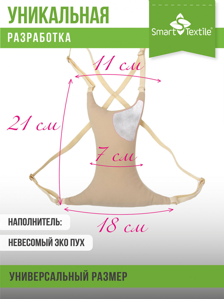 Ответ: Перед сном разместите подушечку между грудями так, чтобы она плотно и комфортно прилегала к телу. Уже с первых ночей вы ощутите заметную разницу в комфорте и состоянии кожи на утро.