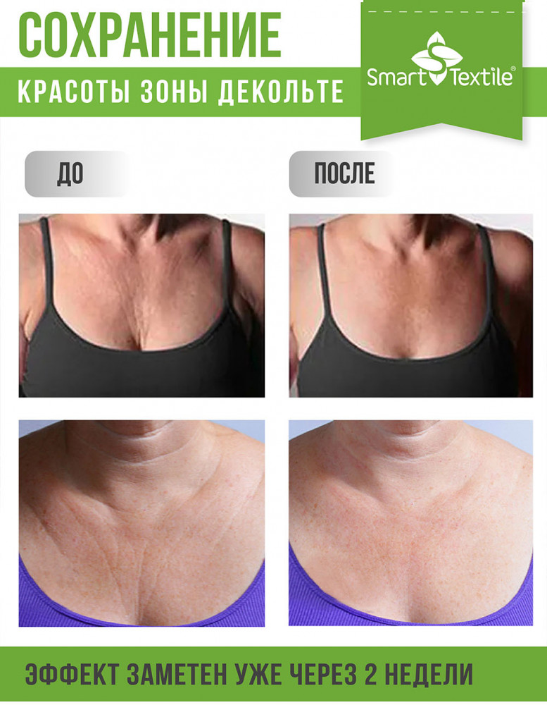 • Мгновенный результат: видимый эффект омоложения зоны декольте уже через 1–2 недели.