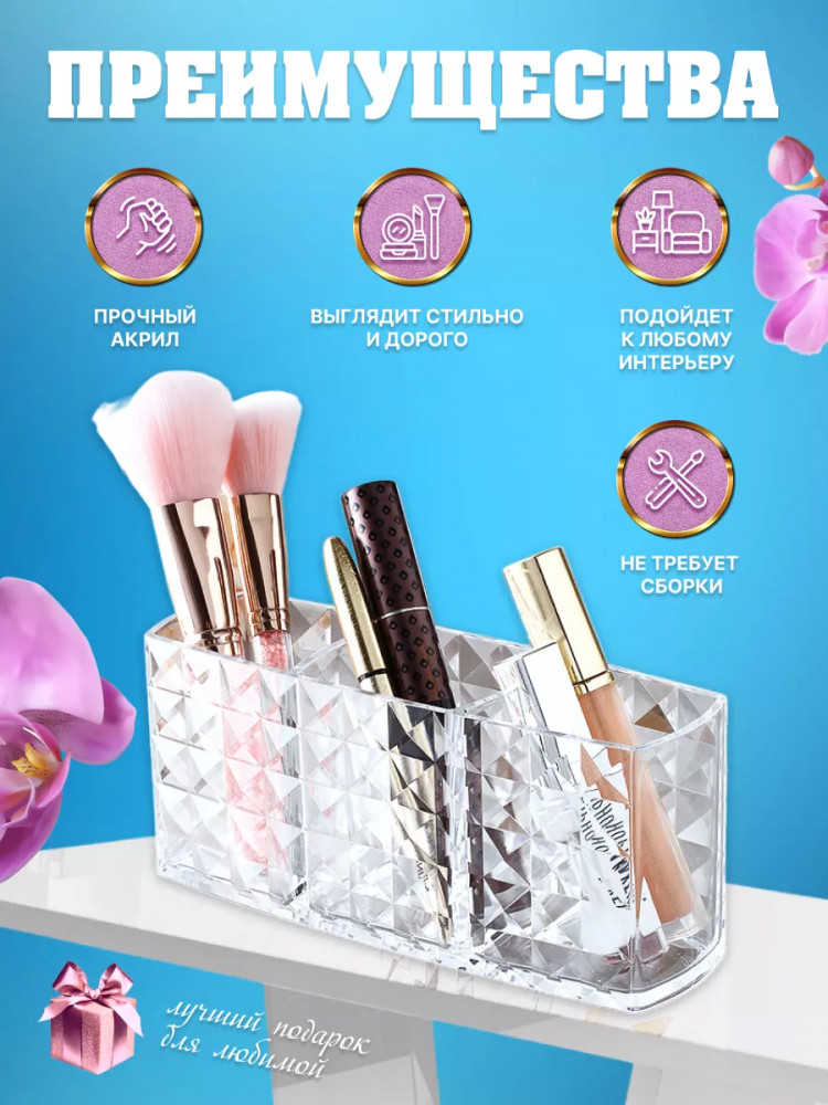💳 Оплатить за товар можно при получении 🇰🇿 Есть бесплатная доставка по Казахстану от 1 дня 🎁 Копите бонусы с каждой покупки Органайзер для кистей и помад — удобный и универсальный аксессуар для хранения косметики. Прозрачный контейнер поможет аккуратно разместить кисти для макияжа, помады, блески для губ и другие косметические средства, чтобы всё было под рукой. |