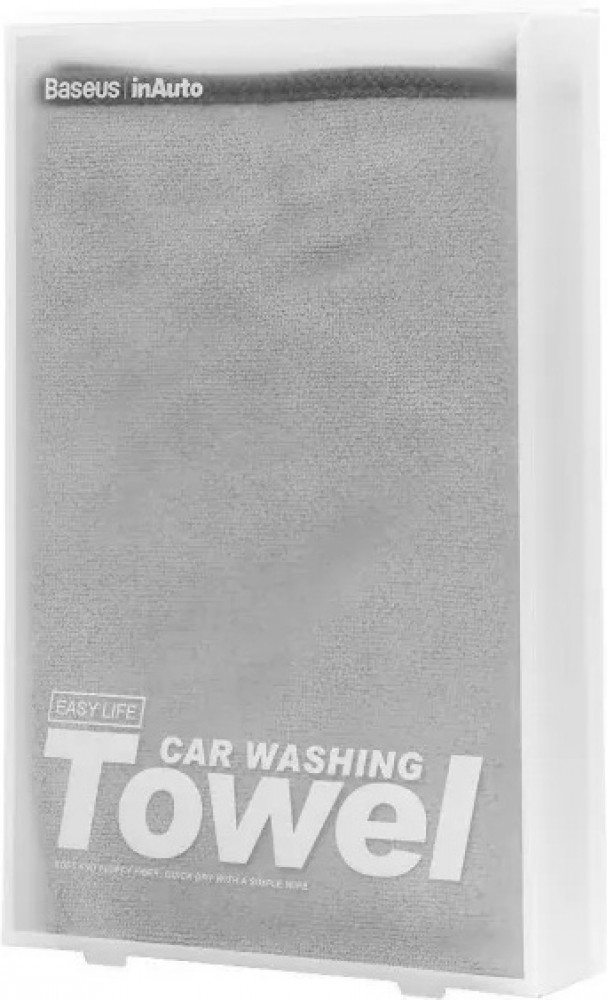 Baseus Easy life car washing towel — автомобильное полотенце из микрофибры, которое хорошо впитывает влагу и удаляет разводы. Структура микрофибры обладает плотным плетением, благодаря чему после ее использования не остается разводов и ворсинок на поверхности. Длина волокон укороченная, что исключает скопление песчинок между ними и возникновение царапин после полировки.