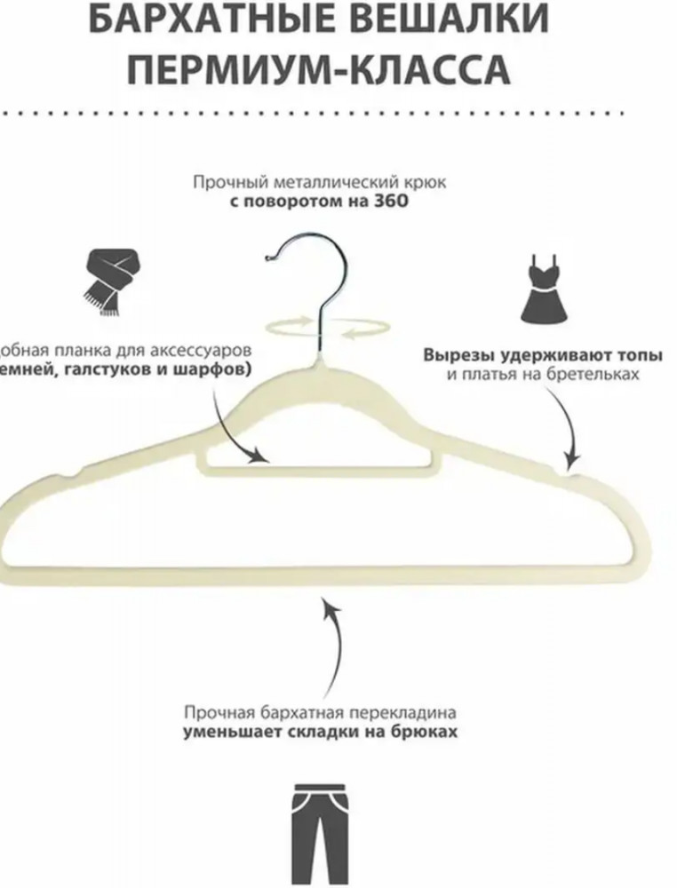 Набор вешалок-плечиков для одежды бархатных