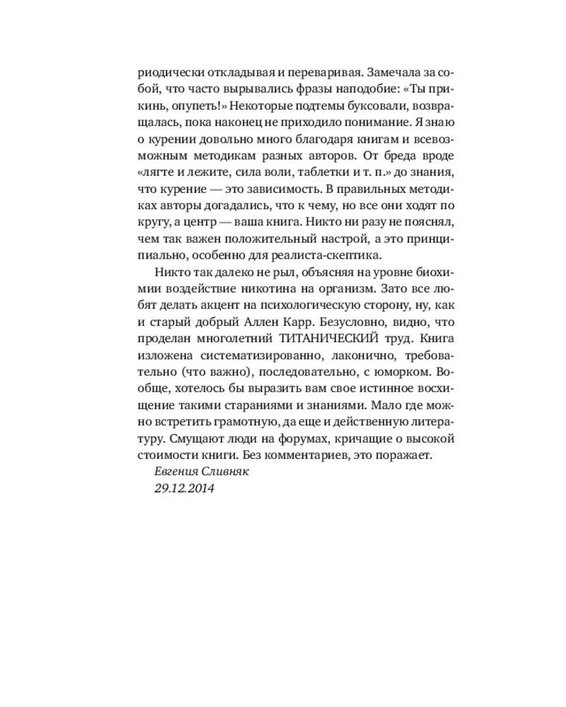 Серия: БЕЗвредные привычки. Лучшие книги по избавлению от зависимостей В чем разница между поддержанием бестабачной диеты и настоящим отказом от курения? Во втором случае вы не просто физически ограничиваете себе доступ к сигаретам, но изначально перестаете испытывать к ним тягу. Вот так просто. Но реально ли?