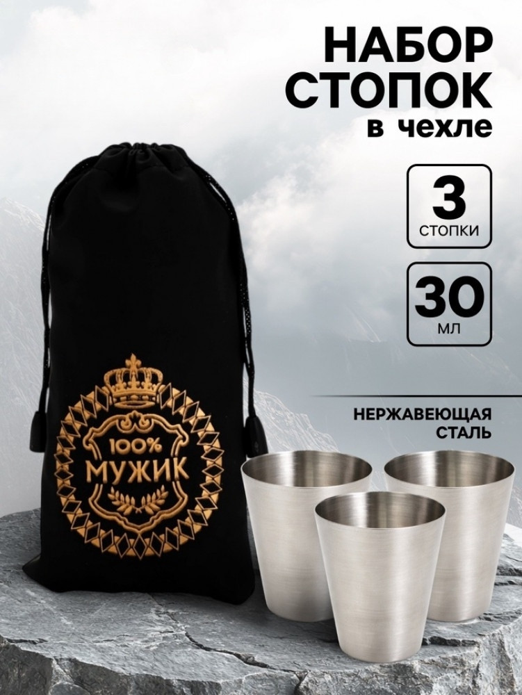 Набор стопок в чехле «100% Мужик»-25% +16