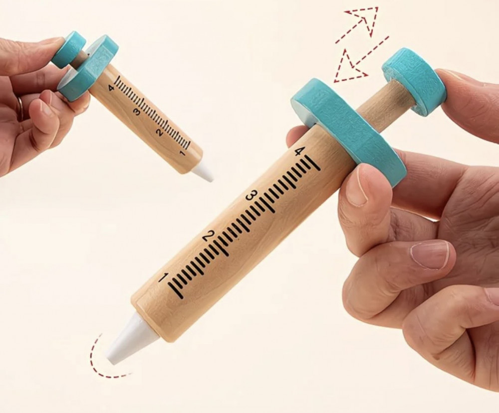 В набор врача входит 35 элементов, некоторые из них выполнены из дерева: стетоскоп, шприц, пинцет игрушечный, градусник, таблетки, зубная щетка, челюсть с зубками, тюбики, блокнот, карандаш, бейдж и другие. |