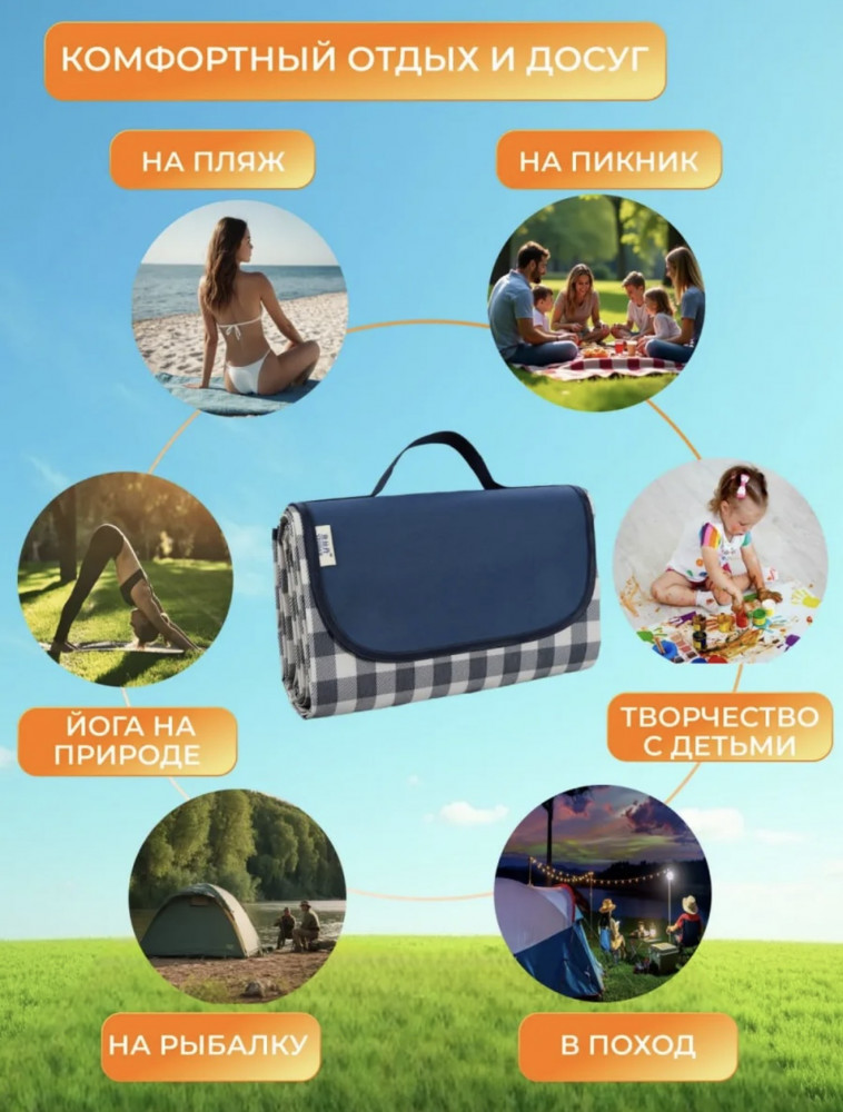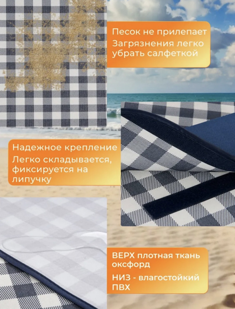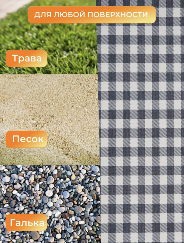 Песок? Забудьте об этом! Антипесок — наш козырь. Сложите его после веселых дней на солнце, поместите в удобную сумку и вперед к новым приключениям! Наслаждайтесь загаром без лишних хлопот. Трехслойная подложка обеспечит комфорт даже при длительном отдыхе под солнечными лучами. Легкий уход, плотная текстура и устойчивость к загрязнениям делают его незаменимым аксессуаром для любого кемпинга. Пляжный коврик для гальки большой. Подстилка на пляж. Ковер пляжный. Коврик для загара на пляже. Коврик пляжный для пикника. Так что собирайте компанию, хватайте еду и отправляйтесь на природу!