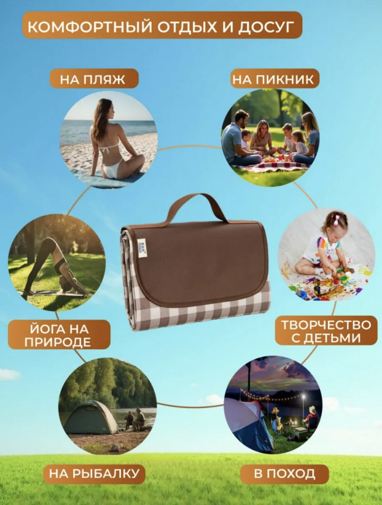 Песок? Забудьте об этом! Антипесок — наш козырь. Сложите его после веселых дней на солнце, поместите в удобную сумку и вперед к новым приключениям! Наслаждайтесь загаром без лишних хлопот. Трехслойная подложка обеспечит комфорт даже при длительном отдыхе под солнечными лучами. Легкий уход, плотная текстура и устойчивость к загрязнениям делают его незаменимым аксессуаром для любого кемпинга. Пляжный коврик для гальки большой. Подстилка на пляж. Ковер пляжный. Коврик для загара на пляже. Коврик пляжный для пикника. Так что собирайте компанию, хватайте еду и отправляйтесь на природу!