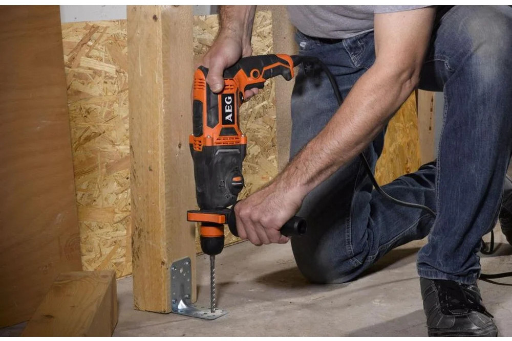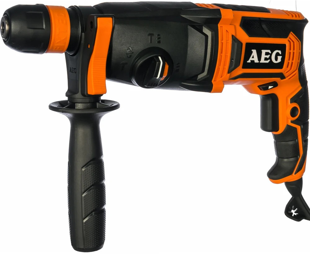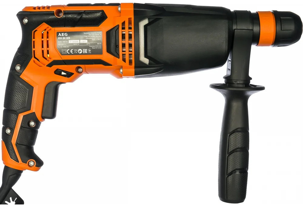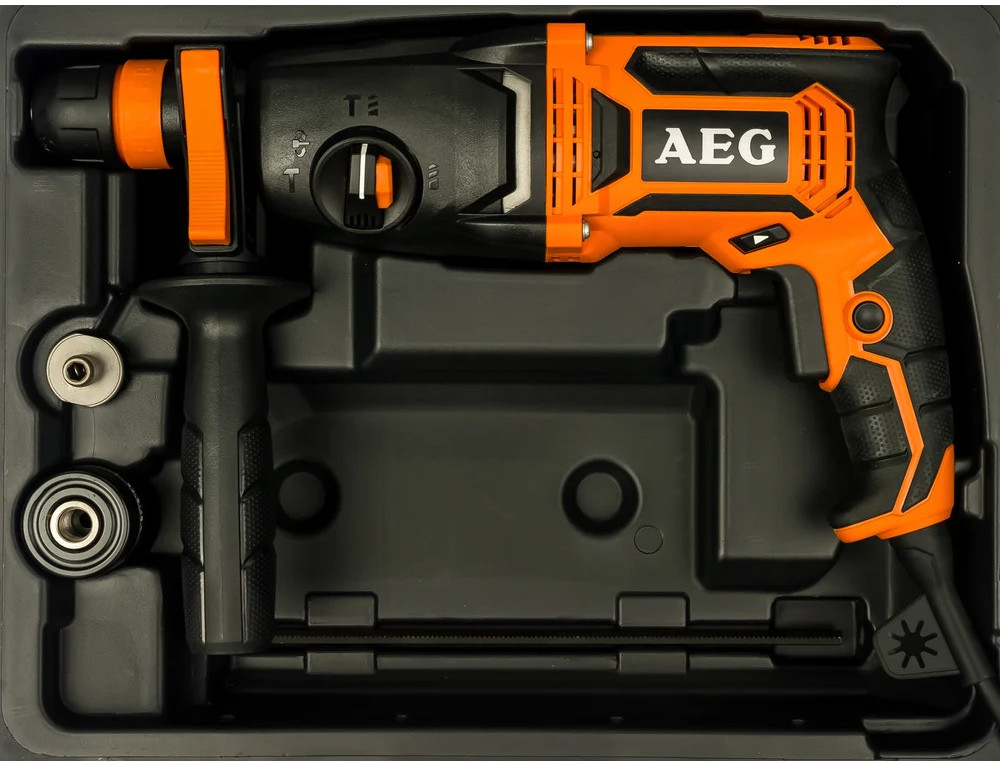 Перфоратор AEG KH24IXE 4935451553 оснащен патроном SDS-plus, что способствует простой смене оснастки. С помощью удобного переключателя, расположенного сбоку на корпусе, осуществляется выбор одного из 3 режимов работы. Предохранительная расцепляющая муфта обеспечивает безопасность оператора и инструмента при заклинивании оснастки. В комплект входит металлический ограничитель, который позволяет выполнять отверстия заданной глубины.