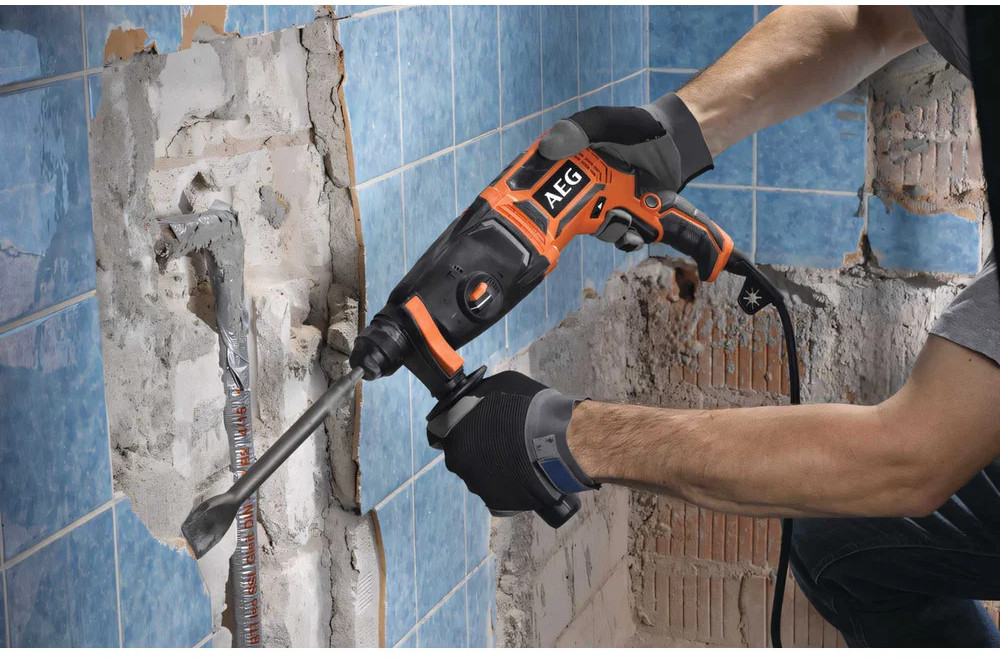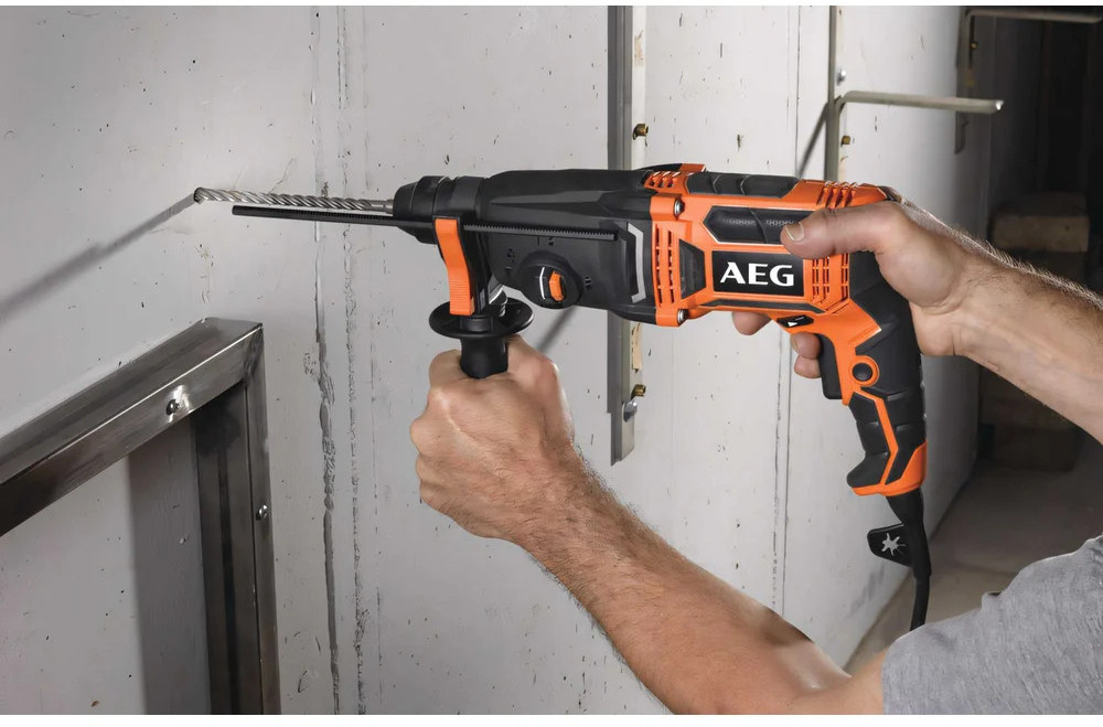 Перфоратор AEG KH24IE 4935451555 имеет три режима работы, что расширяет его функциональность. Широкая клавиша «Пуск» фиксируется в положении «старт», с ее помощью легко и просто регулировать скорость. Дополнительная рукоятка обеспечивает надежное удержание инструмента. Ограничитель позволяет сверлить отверстия заданной глубины.