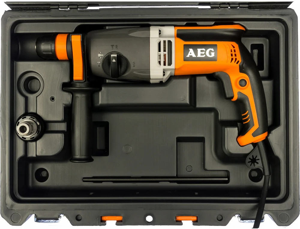 Перфоратор AEG KH 28 Super XE 4935428190 сконструирован для выполнения профессиональных работ. Инструмент пригоден для выполнения различных операций: сверления, бурения и долбления. Для более надежного удержания перфоратора при работе, в его конструкции имеются две рукоятки.