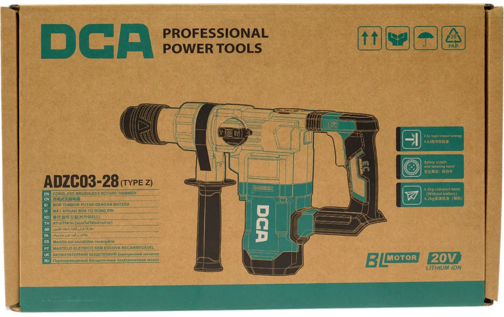 DCA Перфоратор ADZC03-28В данный момент этот товар отсутствует в продаже. Возможно, у нас найдется аналогичный или похожий товар здесь. Перфоратор DCA ADZC03-28 сочетает в себе современные технологии и передовые инженерные решения, обеспечивая надежность, безопасность и комфорт при работе: Бесщеточный двигатель Высокая производительность и долговечность. Двойная защита Механическая защита предотвращает повреждение инструмента и оператора при блокировке бура. Технология KickBack Control обеспечивает дополнительную безопасность, отключая двигатель при резком заклинивании. Патентованная система поглощения вибрации DVR Усовершенствованная система амортизации снижает вибрацию, повышая комфорт даже при длительных сеансах работы. Постоянный и плавный контроль скорости Функция Constant Speed поддерживает стабильную производительность даже под нагрузкой. Регулировка скорости при помощи акселератора позволяет точно настроить инструмент под конкретные задачи. Поставляется без аккумулятора и зарядного устройства. |