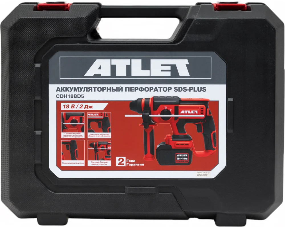Atlet Перфоратор CDH18BD5В данный момент этот товар отсутствует в продаже. Возможно, у нас найдется аналогичный или похожий товар здесь. Аккумуляторный перфоратор Atlet CDH18BD5 18 В предназначен для выполнения широкого спектра задач с использованием режима сверления с ударом, а прочная конструкция позволяет справляться с более сложными работами. Он оснащен двумя съемными литий-ионными аккумуляторами и зарядным устройством. Высокоэффективный бесщеточный мотор повышает мощность, увеличивает время работы и срок службы оборудования. Перфоратор оснащен патроном SDS-Plus и обладает силой удара 2 Дж, что позволяет работать с твердым бетоном или кирпичной кладкой, обеспечивая мощность не уступающую сетевому инструменту. Дрель предлагает 4 универсальные функции: сверление, сверление с ударом, долбление и свободный поворот оснастки. Встроенная светодиодная подсветка расширяет возможности работы в темных условиях. Комфорт и контроль также повышаются благодаря анти-вибрационному дизайну и ребристой накладке на рукоятке. |