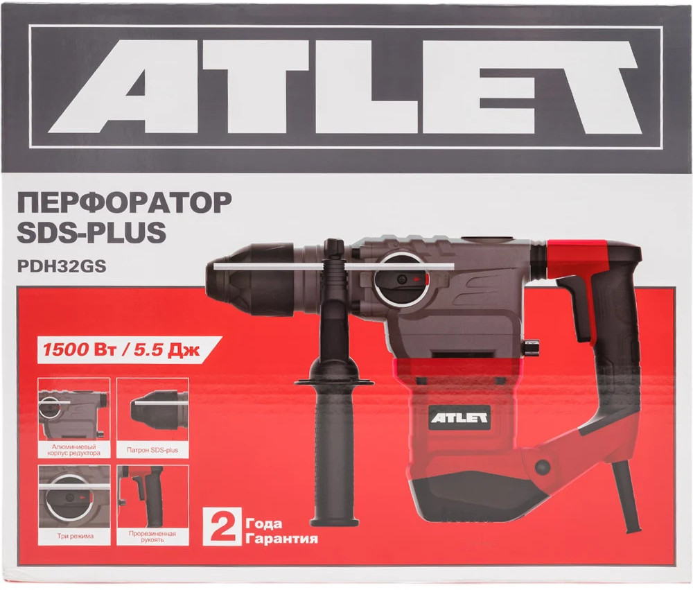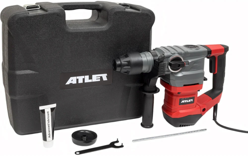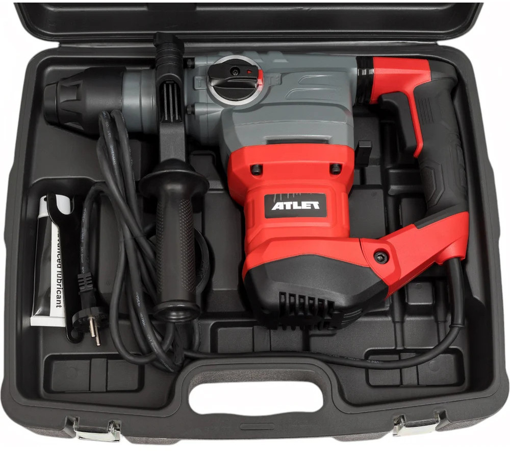 Перфоратор Atlet мощностью 1500Вт и с силой удара 5.5 Дж пригодится при выполнении строительных, ремонтных, слесарных и других работ. Перфоратор оснащен быстрозажимным патроном SDS-Plus для легкой замены оснастки и имеет 3 режима: сверление, сверление с ударом и долбление. Система гашения вибрации представлена наличием специальных антивибрационных накладок.