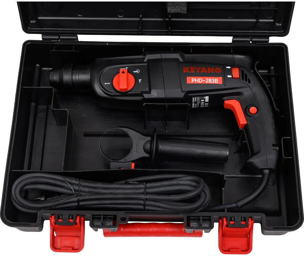 Keyang Перфоратор PHD-283BВ данный момент этот товар отсутствует в продаже. Возможно, у нас найдется аналогичный или похожий товар здесь. Перфоратор Keyang PHD283B подходит для сверления анкерных и крепёжных отверстий диаметром 4-28 мм в бетоне и каменной кладке. Функционирует в трёх режимах: сверление, ударное сверление и долбление. Инструмент обладает оптимальным набором функций для эффективной и точной работы: Двигатель мощностью 800 Вт обеспечивает хорошую производительность. Регулировка скорости позволяет подобрать оптимальный скоростной режим в зависимости от типа материала. Наличие патрона SDS-plus предусматривает возможность быстрой замены расходного инструмента одной рукой. Для удобства при работе в режиме долбления можно отрегулировать угловое положение зубила в диапазоне 32.7°/11. Инструмент имеет ограничитель вращения для лёгкого долбления в камне, мягкой кладке и в ограниченной степени в лёгком бетоне. Дополнительные характеристики гарантируют безопасность: Двойная изоляция защищает от короткого замыкания. Автоматическая остановка двигателя при износе угольных щёток предотвращает его повреждение. Предохранительная муфта срабатывает при достижении определенного крутящего момента. Эта функция предотвращает заедание и заклинивание редуктора и двигателя. |