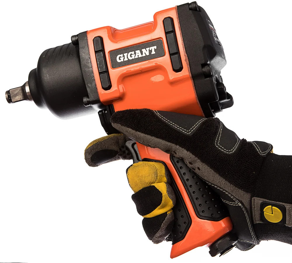 Ударный пневмогайковерт Gigant PW 1280 применяется для закручивания болтоев и гаек. Двойной ударный механизм Twin Hammer позволяет работать с приржавевшим и закисшим крепежом. Точная регулировка. Степень затяжки болтов контролируется регулятором. Ударопрочность. Корпус инструмента отличается повышенной прочностью и устойчивостью к механическим повреждениям. Надежность. Прорезиненная рукоятка не скользит в руке, обеспечивая надежный хват.