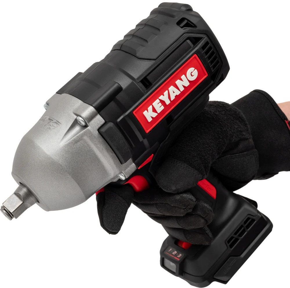 Keyang Гайковерт ударный IW20BLH-1000V (Bare)В данный момент этот товар отсутствует в продаже. Возможно, у нас найдется аналогичный или похожий товар здесь. Аккумуляторный ударный гайковерт Keyang IW20BLH-1000V (Bare) представляет собой профессиональный инструмент, предназначенный для выполнения сложных задач. Он оснащен бесщеточным двигателем, что обеспечивает высокую эффективность и долговечность работы. Гайковерт имеет патрон размером 1/2 дюйма и способен развивать максимальный крутящий момент до 1000 Нм, что позволяет работать с крепежом до М24. Частота вращения шпинделя достигает 1900 об/мин, при этом предусмотрена возможность регулировки скорости. Наличие функции удара и реверса расширяет возможности использования инструмента. Встроенная подсветка обеспечивает комфортную работу в условиях недостаточной освещенности. Гайковерт питается от Li-Ion аккумулятора напряжением 18 В, что гарантирует длительное время работы без подзарядки. |