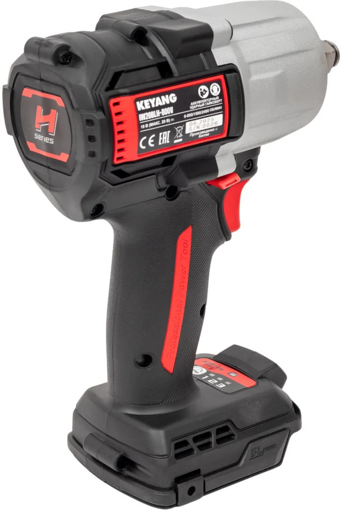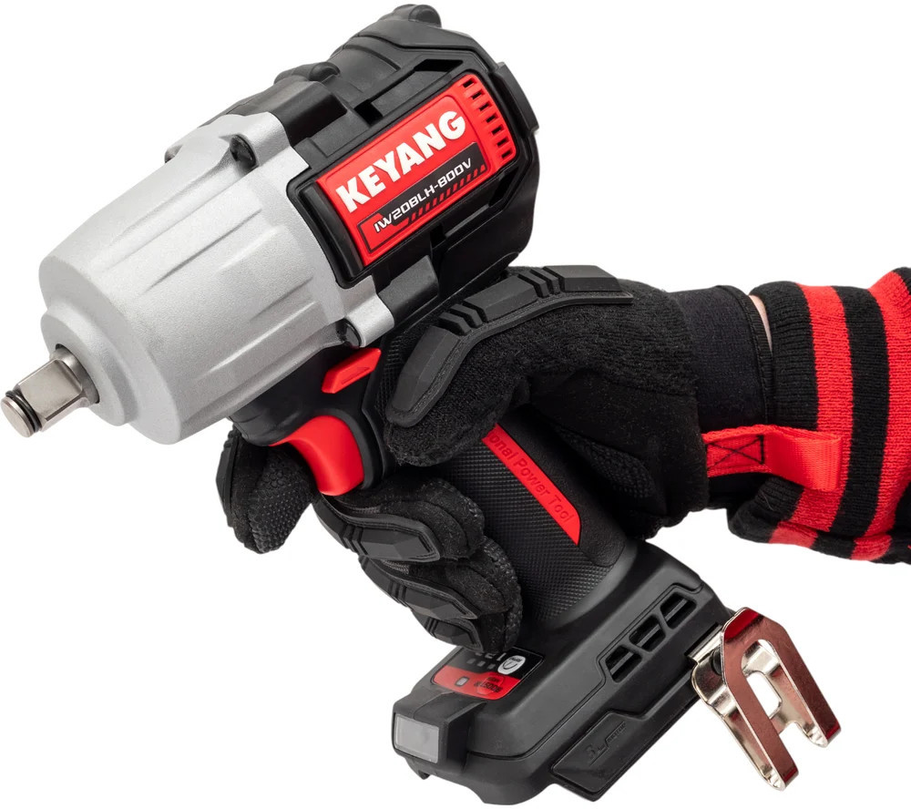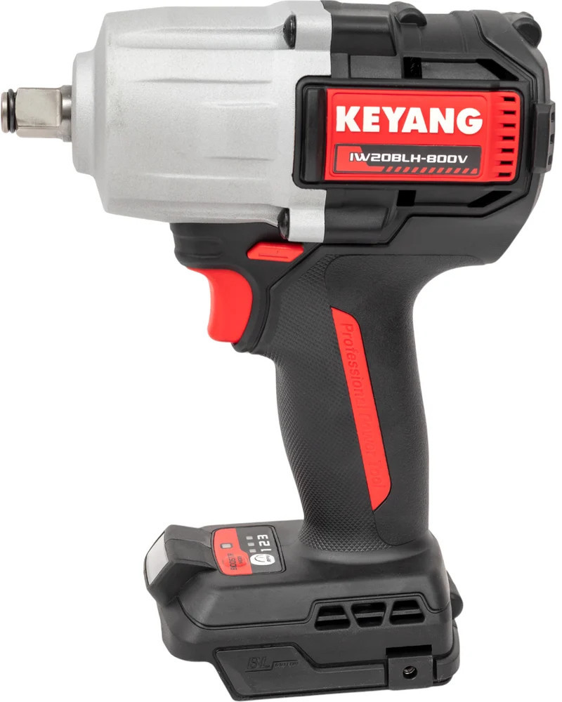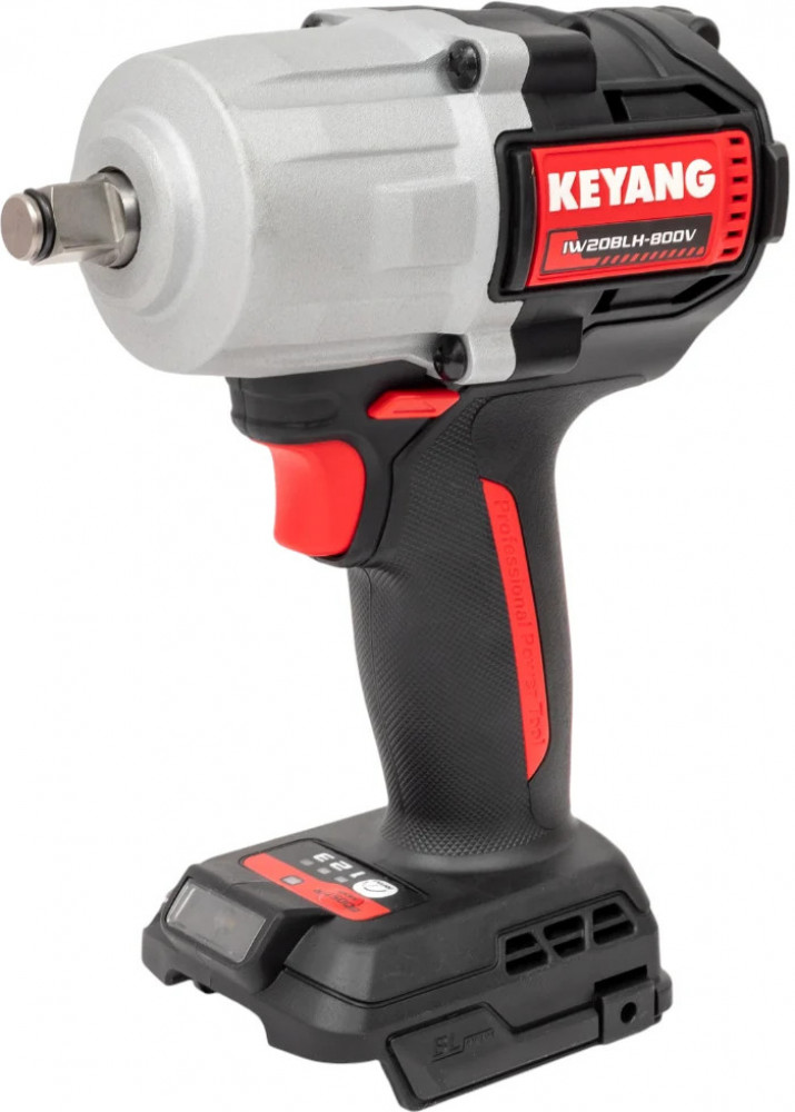 Аккумуляторный ударный гайковерт Keyang IW20BLH-800V (Bare) представляет собой профессиональный инструмент, предназначенный для выполнения сложных задач. Оснащенный бесщеточным двигателем, он обеспечивает высокую эффективность и долговечность работы. Гайковерт имеет квадратный патрон размером 1/2 дюйма, что позволяет использовать его с различными крепежными элементами до размера М22. Максимальный крутящий момент в 800 Нм и частота вращения шпинделя до 2400 об/мин делают его мощным инструментом для работы с крепежом. Наличие функции удара и реверса расширяет возможности применения, а встроенная подсветка обеспечивает удобство работы в условиях недостаточной освещенности.