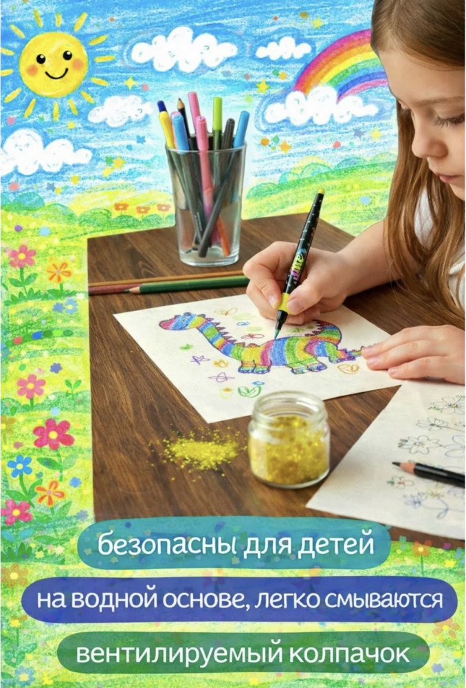 💳 Оплатить за товар можно при получении 🇰🇿 Есть бесплатная доставка по Казахстану от 1 дня 🎁 Копите бонусы с каждой покупки Яркий набор глиттерных маркеров для творчества — 80 насыщенных цветов с эффектом блеска. Маркеры создают красивый сияющий рисунок с блестками, который идеально подходит для открыток, скетчинга, раскрасок, декора и детского творчества. Благодаря мягкому наконечнику маркеры легко рисуют как тонкие линии, так и более плотную заливку. Цвета яркие, насыщенные и красиво переливаются на бумаге. |