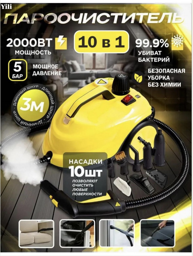 Пароочиститель для дома и автомобиля - это искрящаяся чистота без химии! Ваш ключ к идеальной чистоте дома без лишних усилий и вреда для здоровья! Этот мощный пароочиститель - настоящая находка для тех, кто ценит чистоту и заботится о своей семье.
