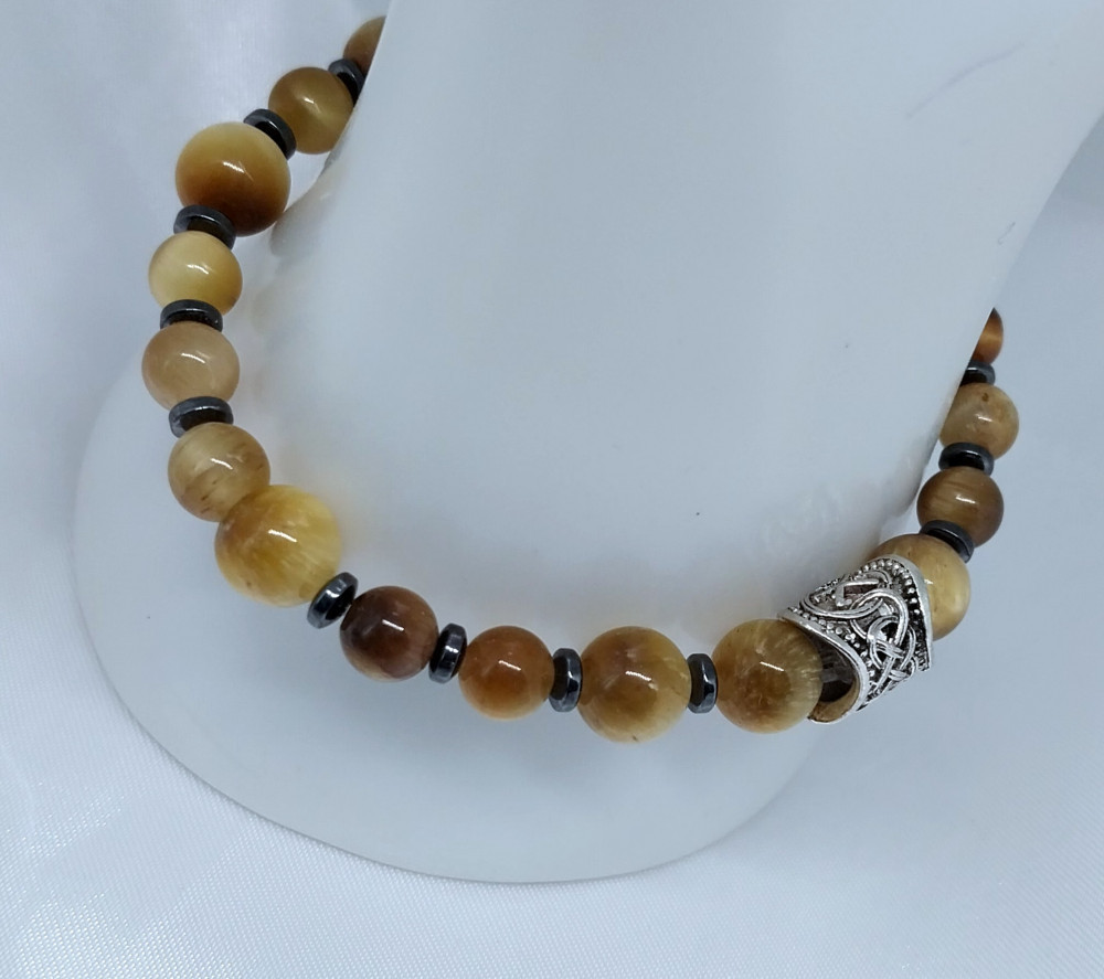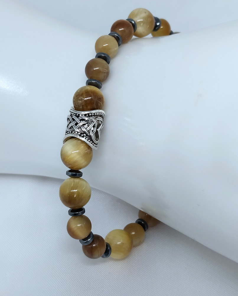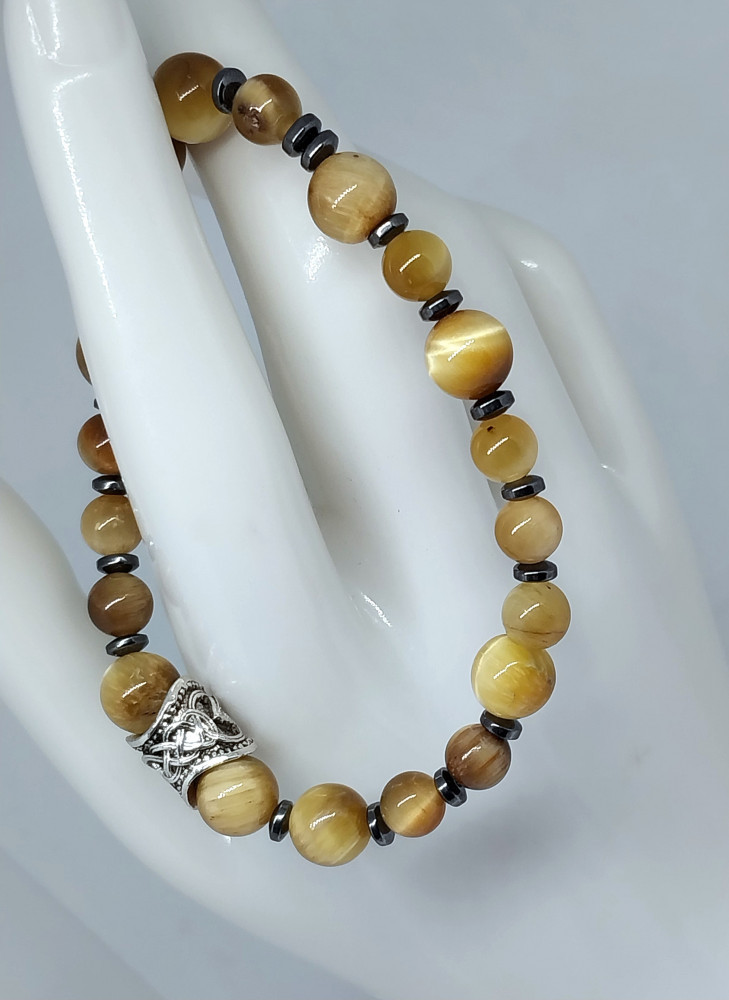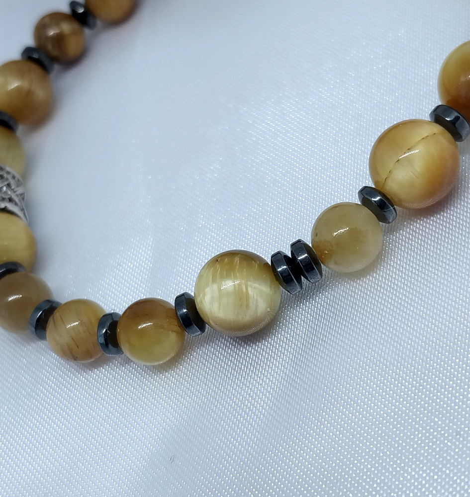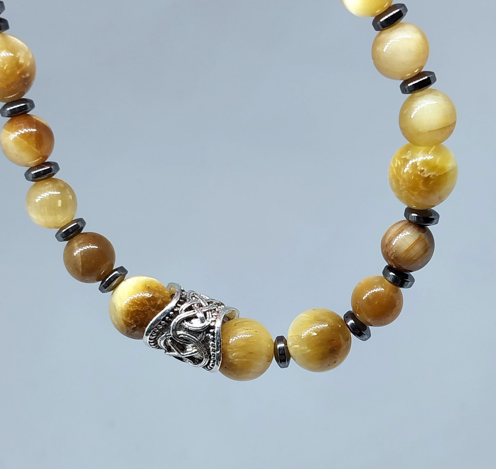 Браслет из натурального камня тигровый глаз с гематитом