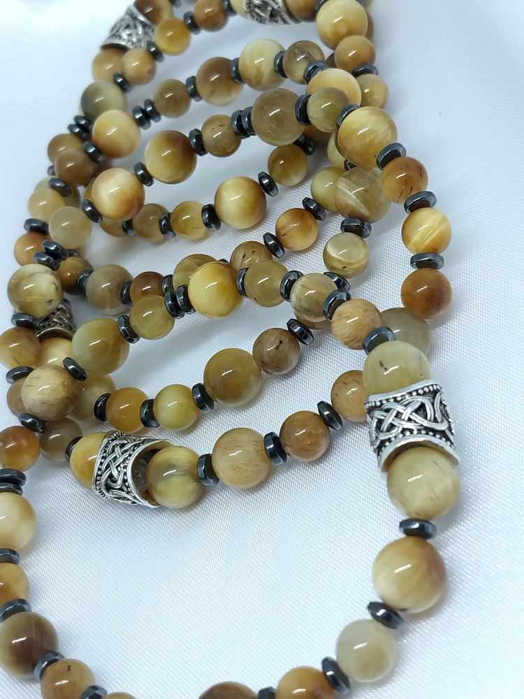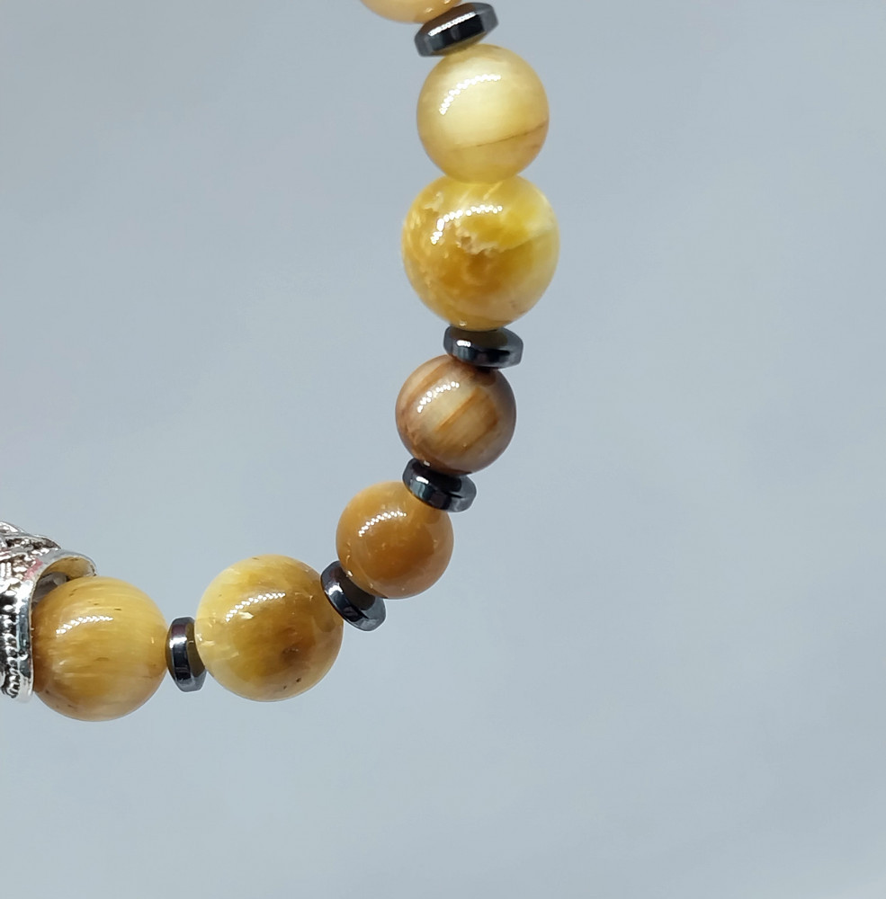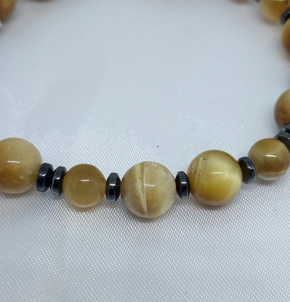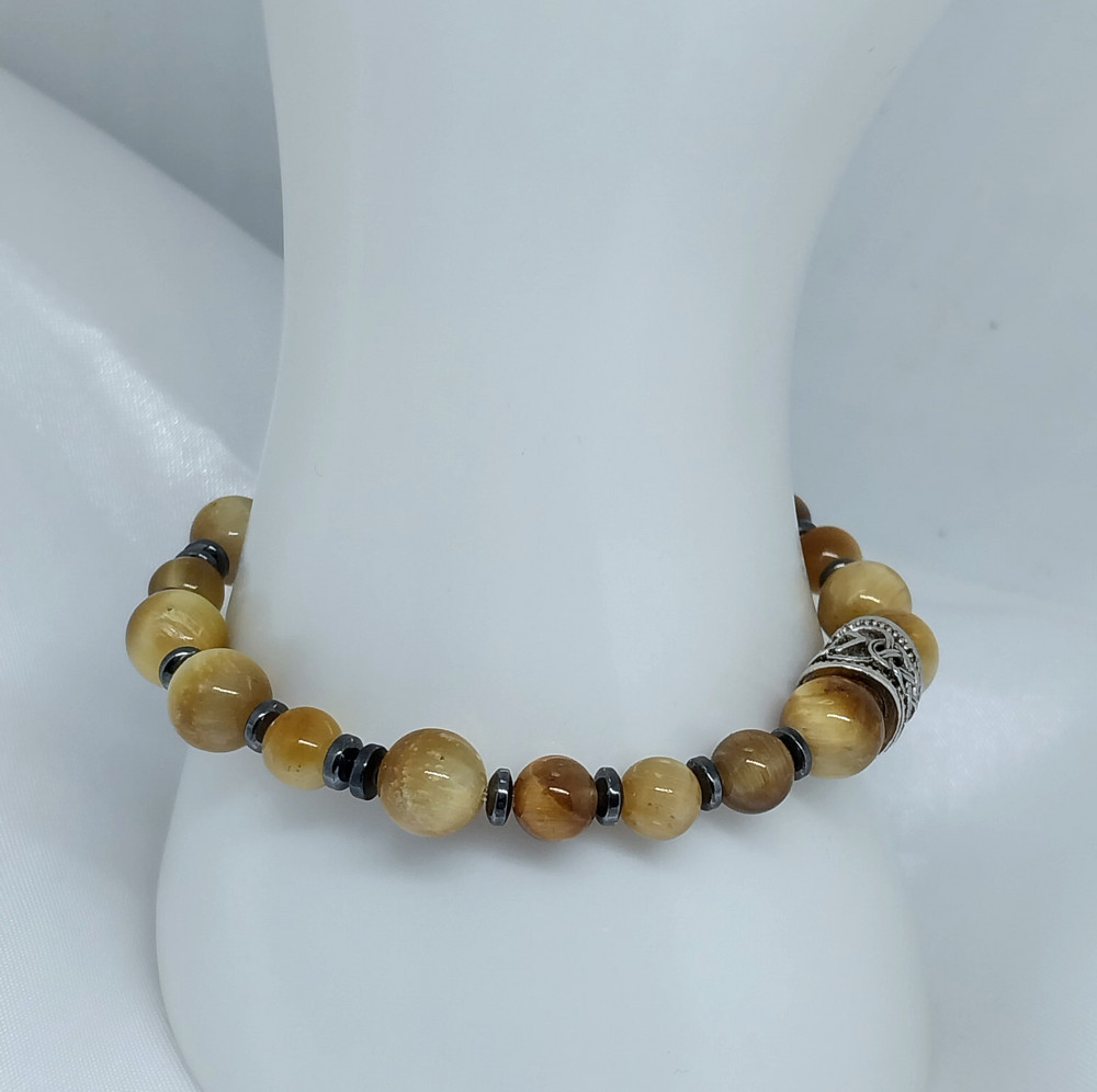 Браслет из натурального камня тигровый глаз с гематитом