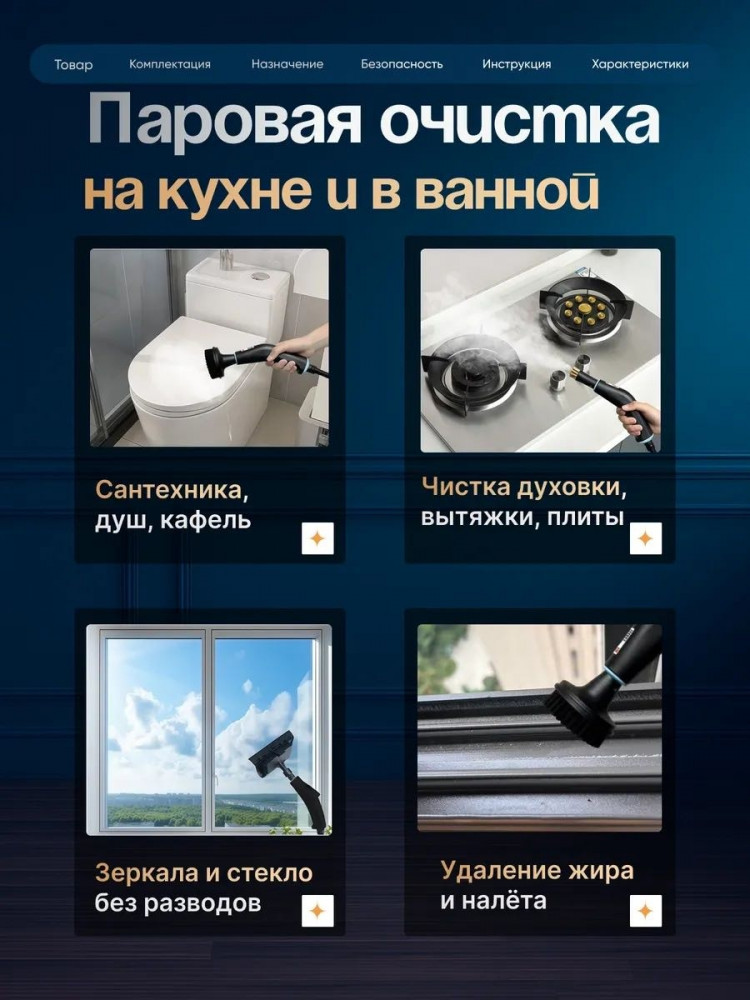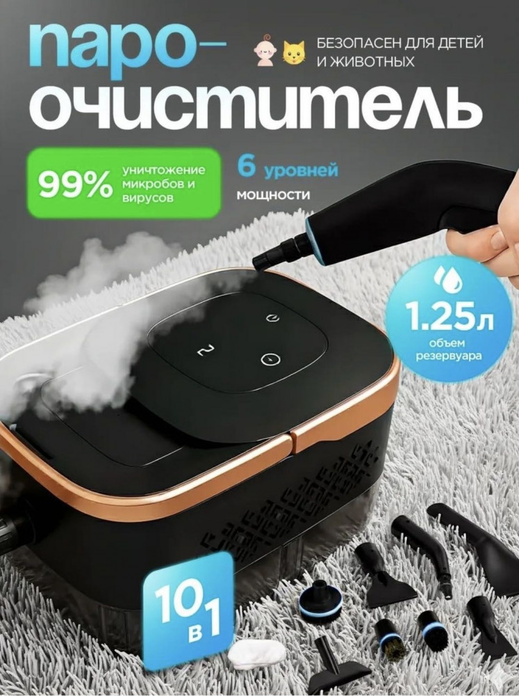 Пароочиститель ST23В данный момент этот товар отсутствует в продаже. Возможно, у нас найдется аналогичный или похожий товар здесь. Мощный пароочиститель для дома, квартиры и автомобиля — практичное решение для быстрой и эффективной уборки без использования химии. Устройство готово к работе всего за 15 секунд, что позволяет экономить время и сразу приступать к очистке поверхностей. Пароочиститель оснащён кабелем питания 1,5 м и паровой трубкой длиной 2 м, благодаря чему удобно очищать труднодоступные места, углы, стыки плитки, мебель и салон автомобиля. В комплект входит 8 насадок для комплексной уборки пола, плитки, кухни, ванной комнаты, мебели, текстиля, стекла и сантехники. Горячий пар эффективно удаляет грязь, жир, налёт и бактерии, обеспечивая гигиеничную и экологичную уборку без моющих средств. Прибор безопасен для детей и домашних животных, подходит для ежедневного использования. Корпус выполнен из прочного термостойкого пластика, пароочиститель прост в эксплуатации и не требует сложного обслуживания. Идеален для поддержания чистоты в доме, квартире и автомобиле. |