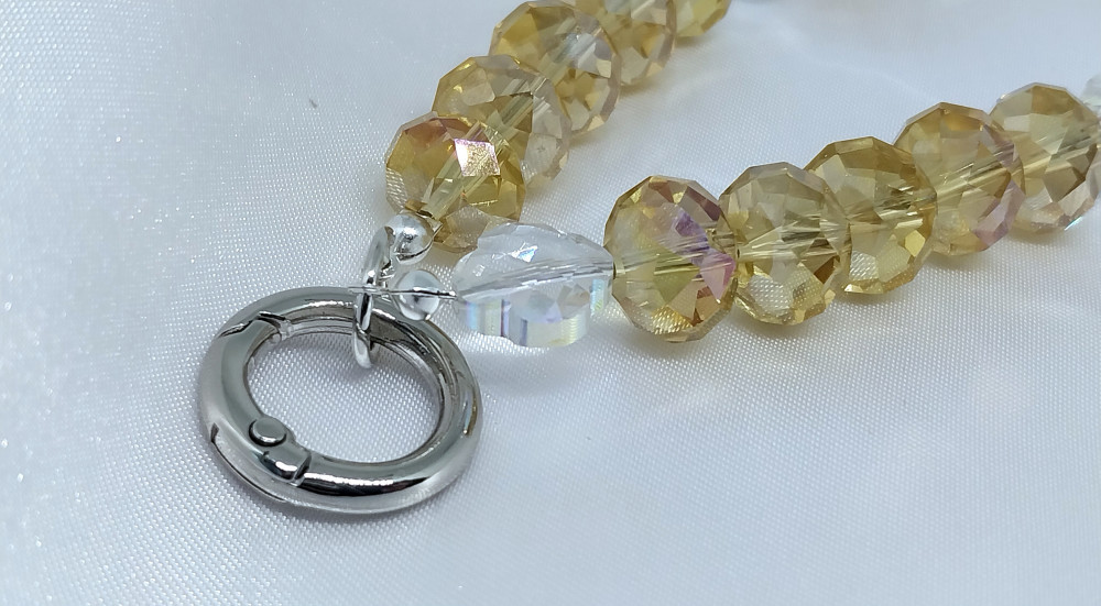 💳 Оплатить за товар можно при получении 🇰🇿 Есть бесплатная доставка по Казахстану от 1 дня 🎁 Копите бонусы с каждой покупки Сотуар-шнур для телефона из прозрачных бусин цвета шампанского с вставными бусинами в форме четырёхлистника. Длина сотуара 32 см. Диаметр пружинного карабина (спинач) 1.5×1.5 см, цвет серебро. Диаметр бусин 1.2×1 см, диаметр четырёхлистника 1.2×1.2 см. |