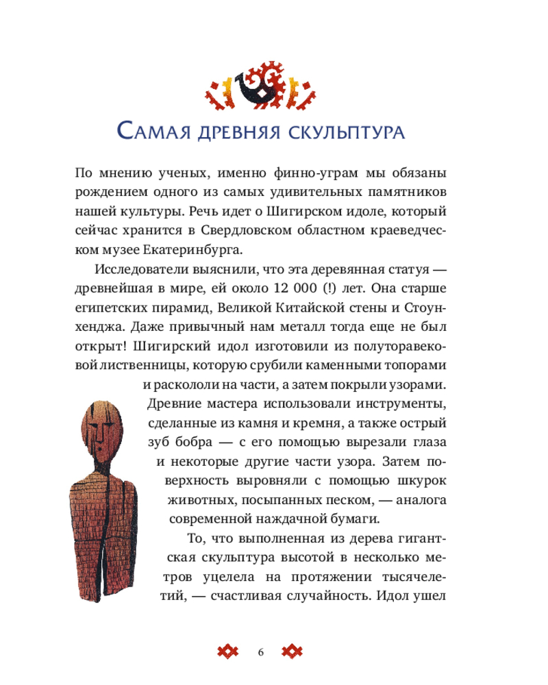 Книга из иллюстрированной серии «Мифы для детей» знакомит с легендами финно-угорских народов — карелов, мордвы, удмуртов, манси, хантов, саамов и других народов от Карелии до Западной Сибири. Она рассказывает, как люди представляли себе устройство мира, во что верили, каких богов и духов почитали и какие легенды передавали из поколения в поколение.