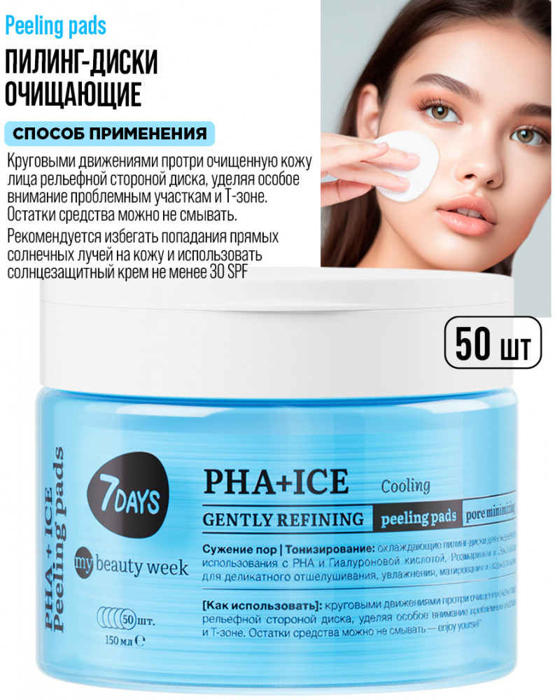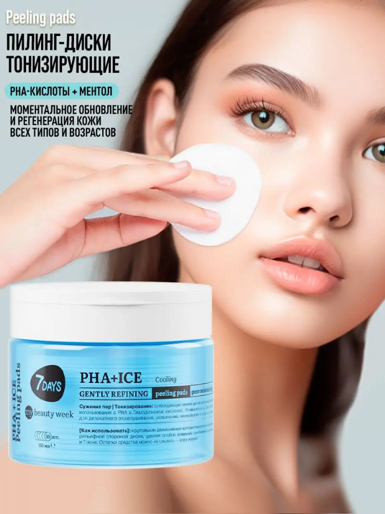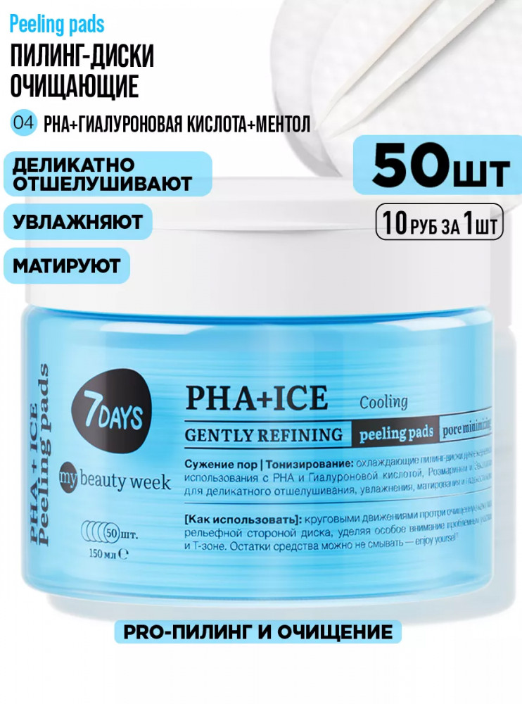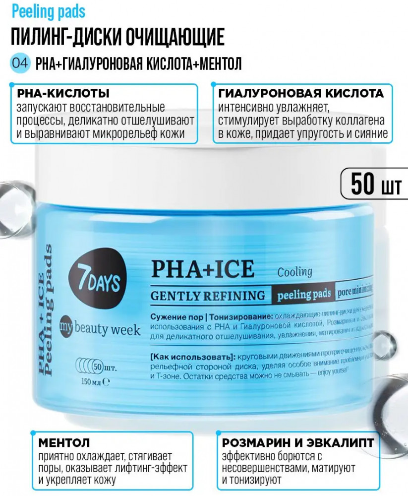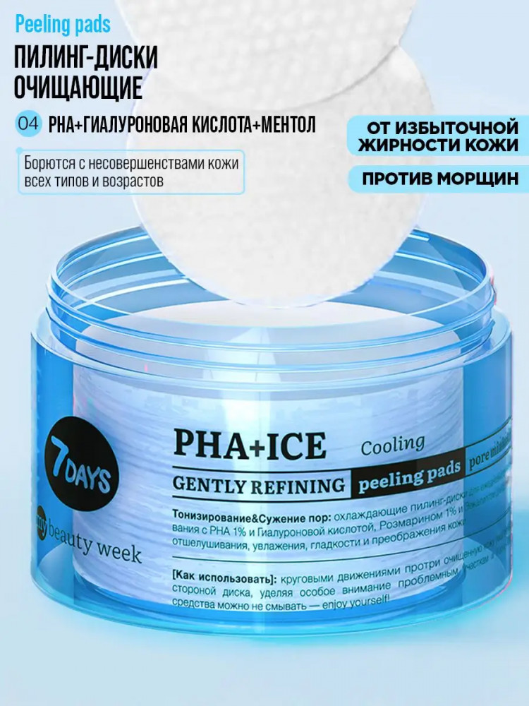 7Days Пилинг-диски для лица охлаждающие с PHA-кислотами, гиалуроновой кислотой и ментолом «PHA+Ice»