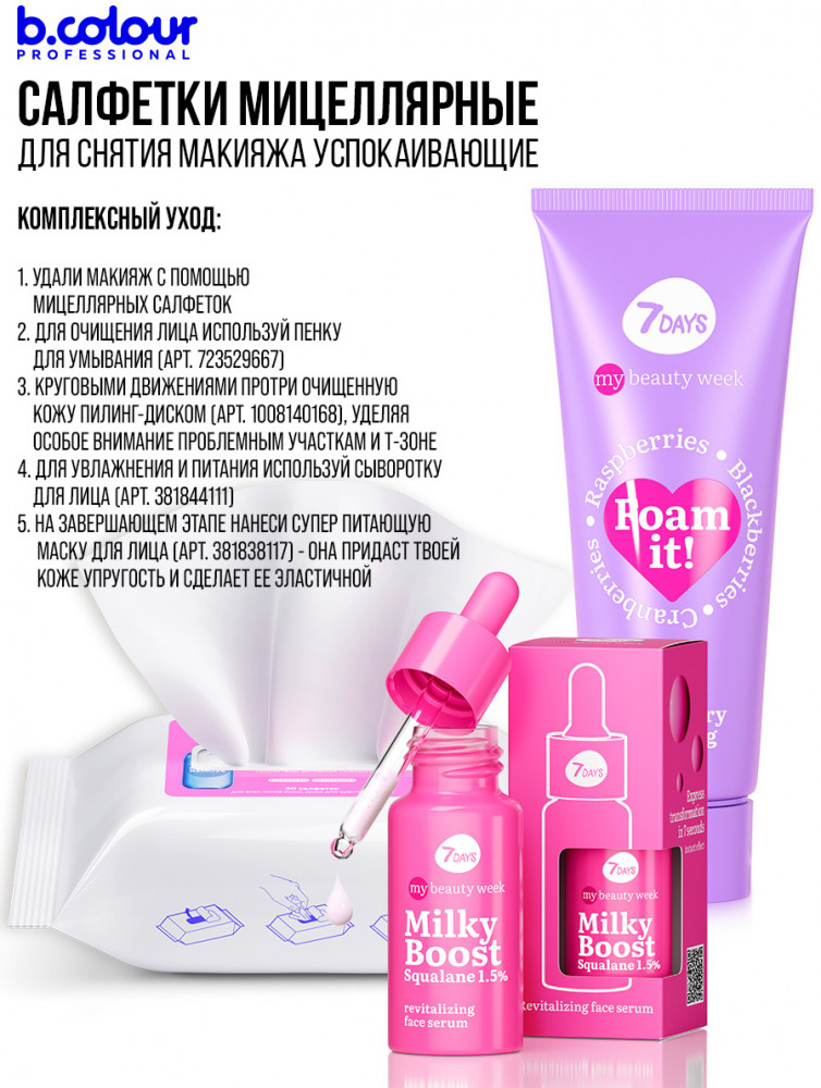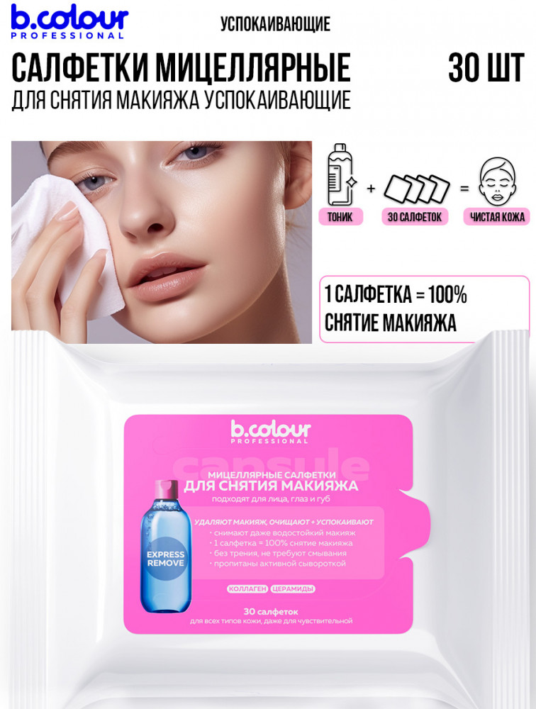 B.colour Professional Мицеллярные салфетки для снятия макияжа с коллагеном и церамидами