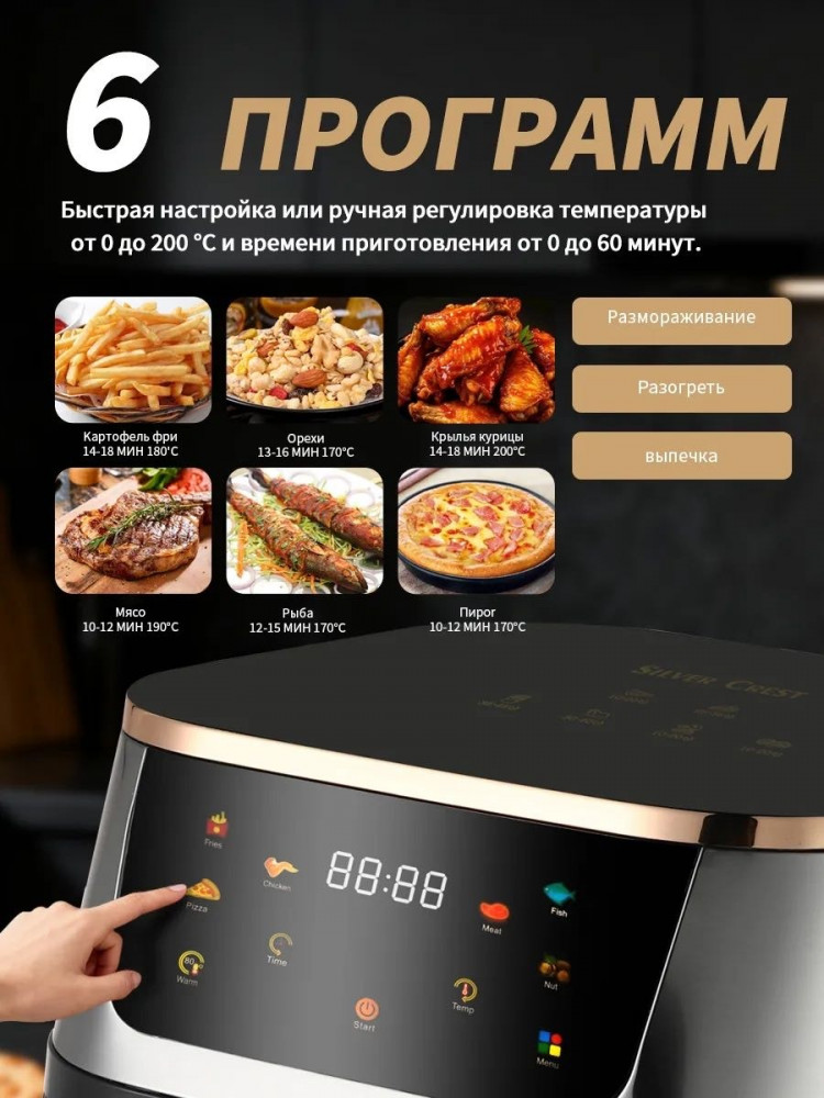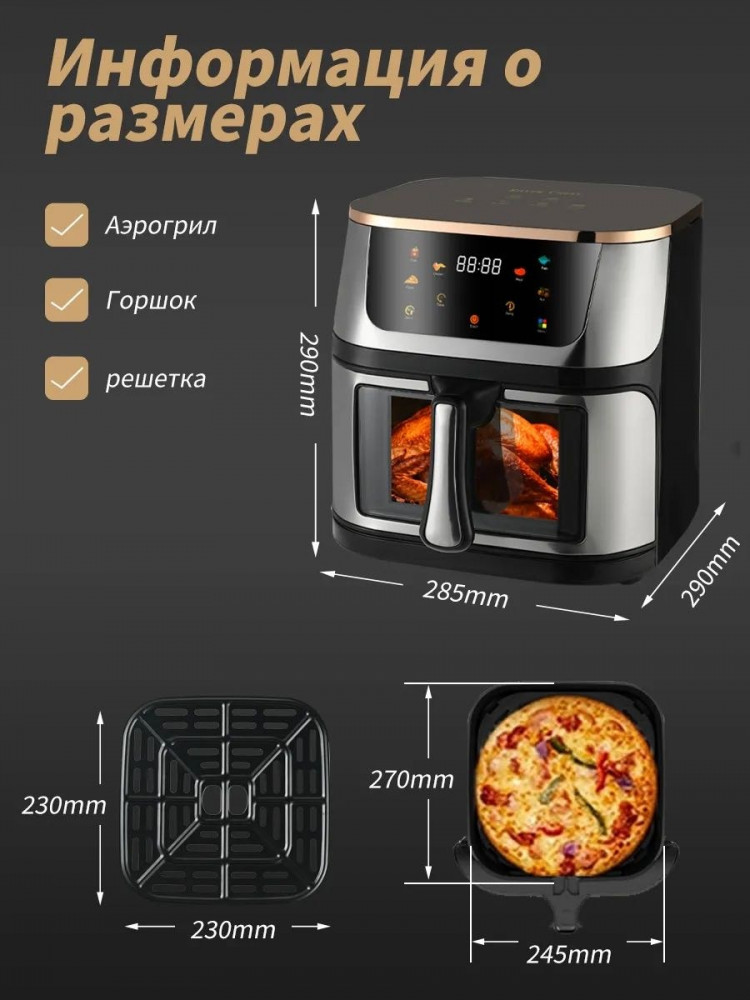 💳 Оплатить за товар можно при получении 🇰🇿 Есть бесплатная доставка по Казахстану от 1 дня 🎁 Копите бонусы с каждой покупки Аэрогриль электрический 12 литров — универсальный шеф-повар для вашей кухни! Готовьте как профессионал с одним прибором вместо целого арсенала техники! Она специально создана для заботливых родителей, которые хотят радовать своих детей и всю семью по-настоящему вкусной и, что самое главное, полезной едой без лишнего масла и жира. Готовьте любимые блюда сразу на 3-4 человек — больше не нужно жарить порциями! |