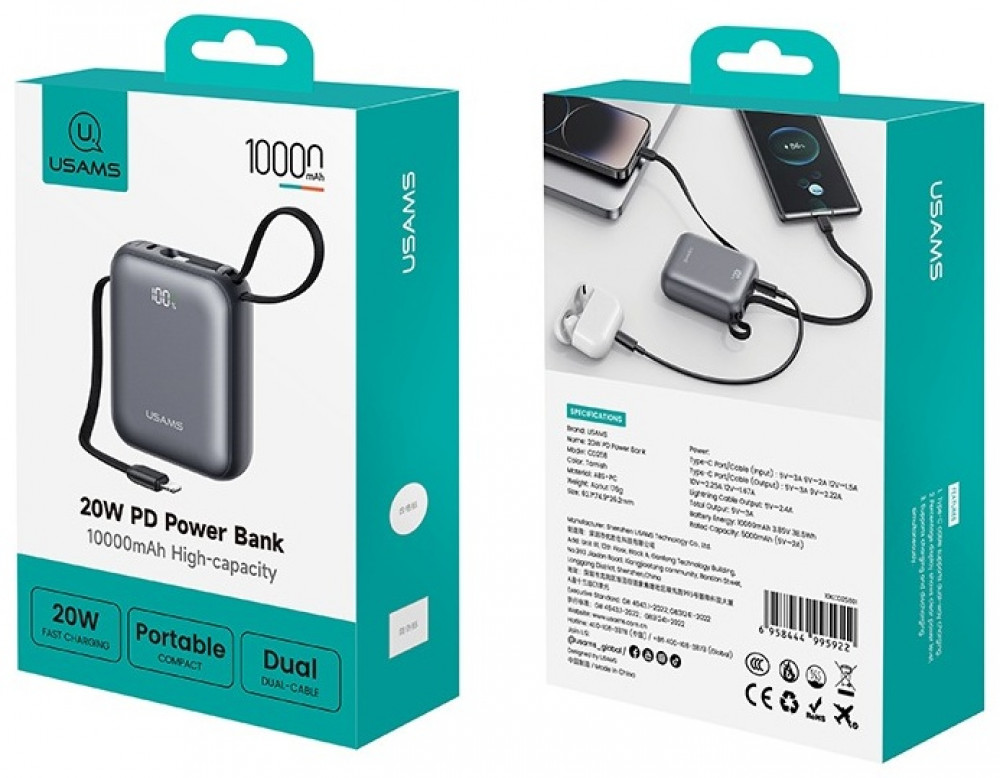 Внешний аккумулятор USAMS CD258 — компактный power bank для быстрой зарядки смартфонов, наушников и других гаджетов в дороге. Емкость 10000 мАч позволяет несколько раз подзарядить телефон и оставаться на связи в течение дня.