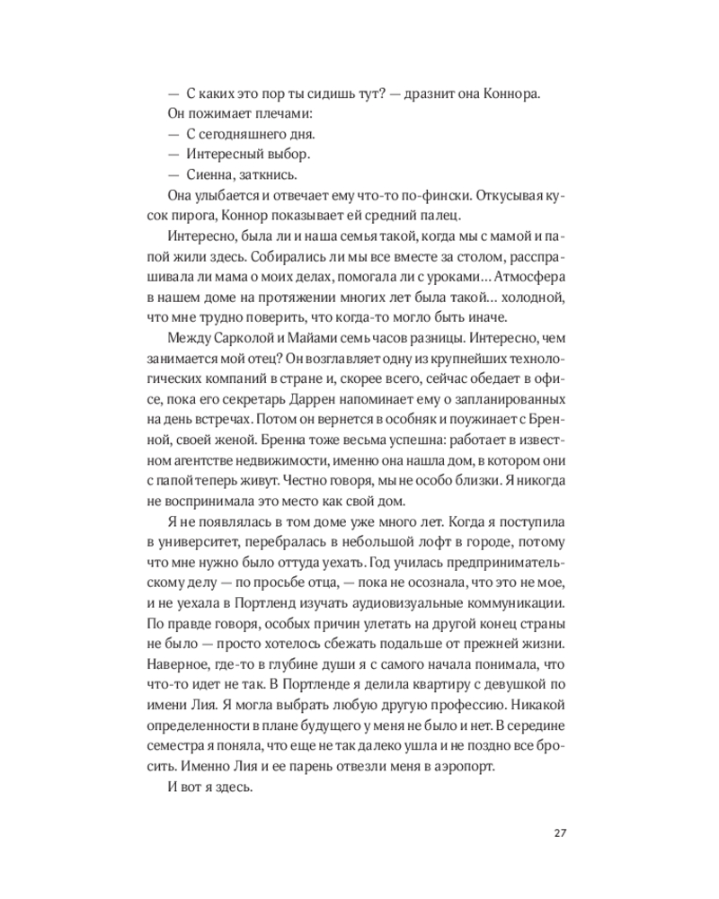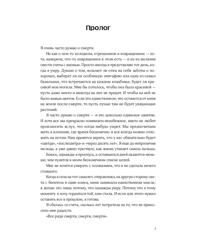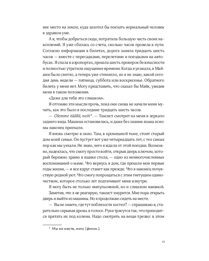 💳 Оплатить за товар можно при получении 🇰🇿 Есть бесплатная доставка по Казахстану от 1 дня 🎁 Копите бонусы с каждой покупки Мейв чувствует себя потерянной и неудовлетворенной. Следуя импульсу, она покупает билет в один конец в Финляндию — подальше от разбитого сердца и бессмысленной жизни в Майами. В небольшом финском поселке Саркола она неожиданно встречает старого друга, Коннора, который предлагает ей кое-что необычное: составить список желаний и выполнить его вместе. Семь пунктов. Семь шансов понять, кто она такая и чего хочет от жизни. От экстремального купания в проруби до охоты за северным сиянием — каждый день приносит новые открытия. Но самое важное открытие ждёт впереди: что значит быть по-настоящему живой. |