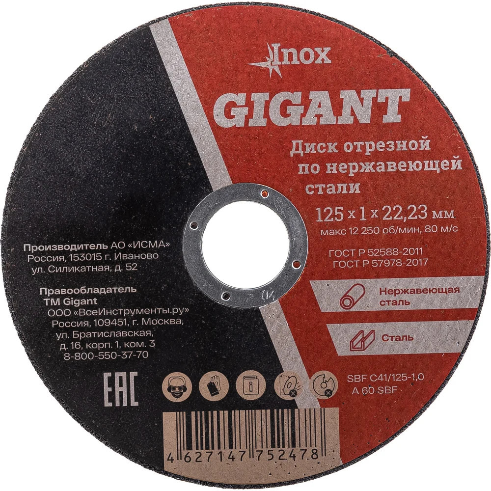 Диск Gigant SBF C41/125-1.0 предназначен для угловых шлифовальных машин. Применяется для реза по нержавеющей стали. Диск обладает высокой производительностью и большим ресурсом работы. Оснастка изготавливается на современном оборудовании под строгим контролем качества в соответствии с ГОСТ Р 52588-2011, ГОСТ 21963-2002. Посадочный диаметр — 22.2 мм позволяет использовать диск на большинстве современных шлифовальных машин. Внимание, изображение товара может отличаться от реального!