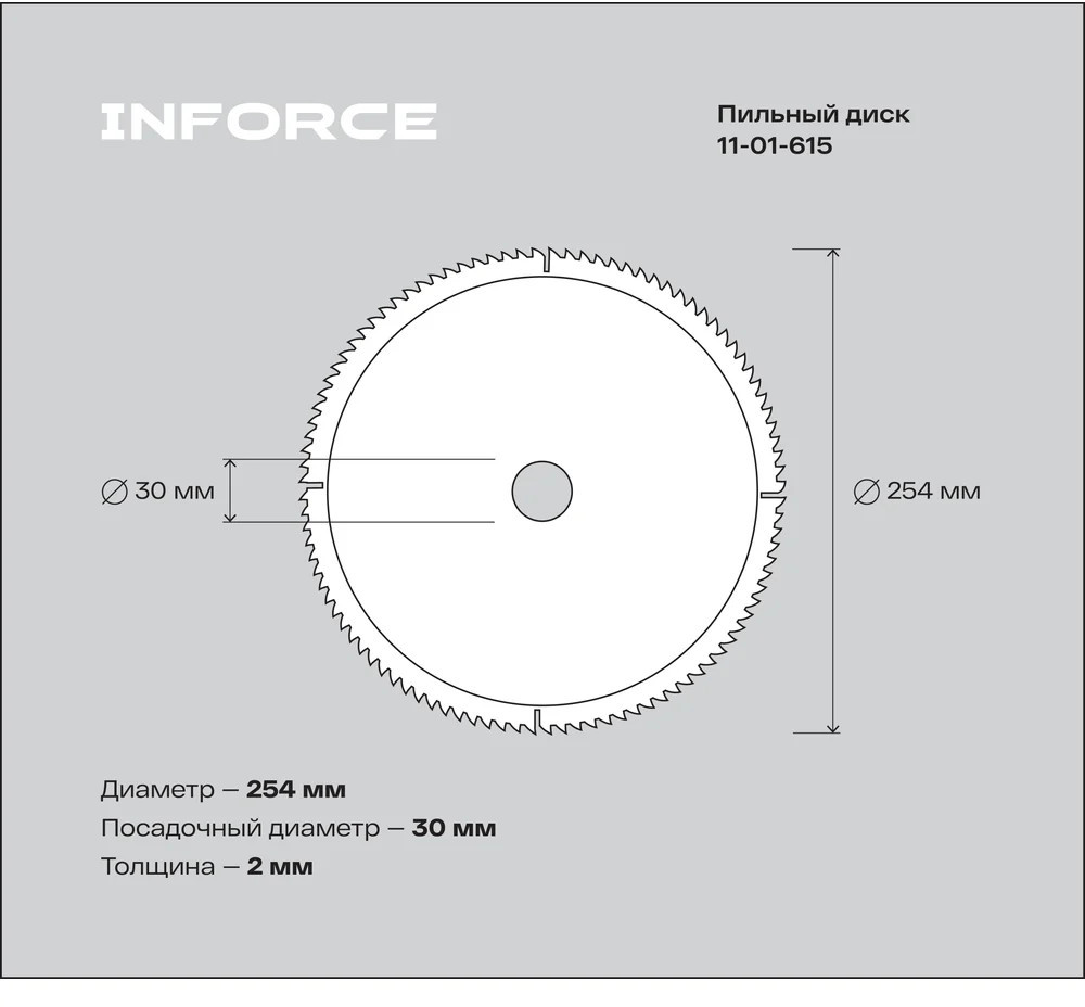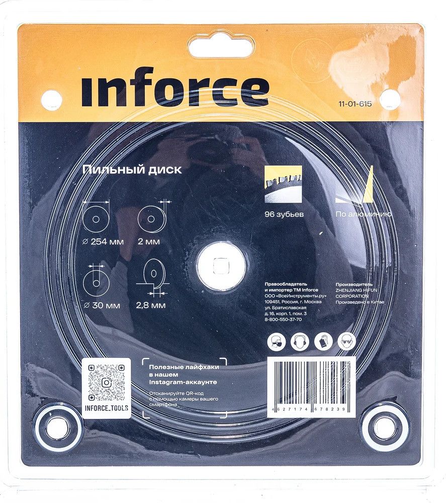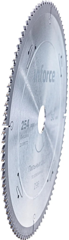 Inforce пильный диск предназначен для работы по алюминию. Зубья оснастки оснащены твердосплавными напайками с ровной геометрией и имеют специальную заточку для качественной распиловки заготовок. Диск обеспечивает высокую скорость резки, идеальный баланс и отличную точность.
