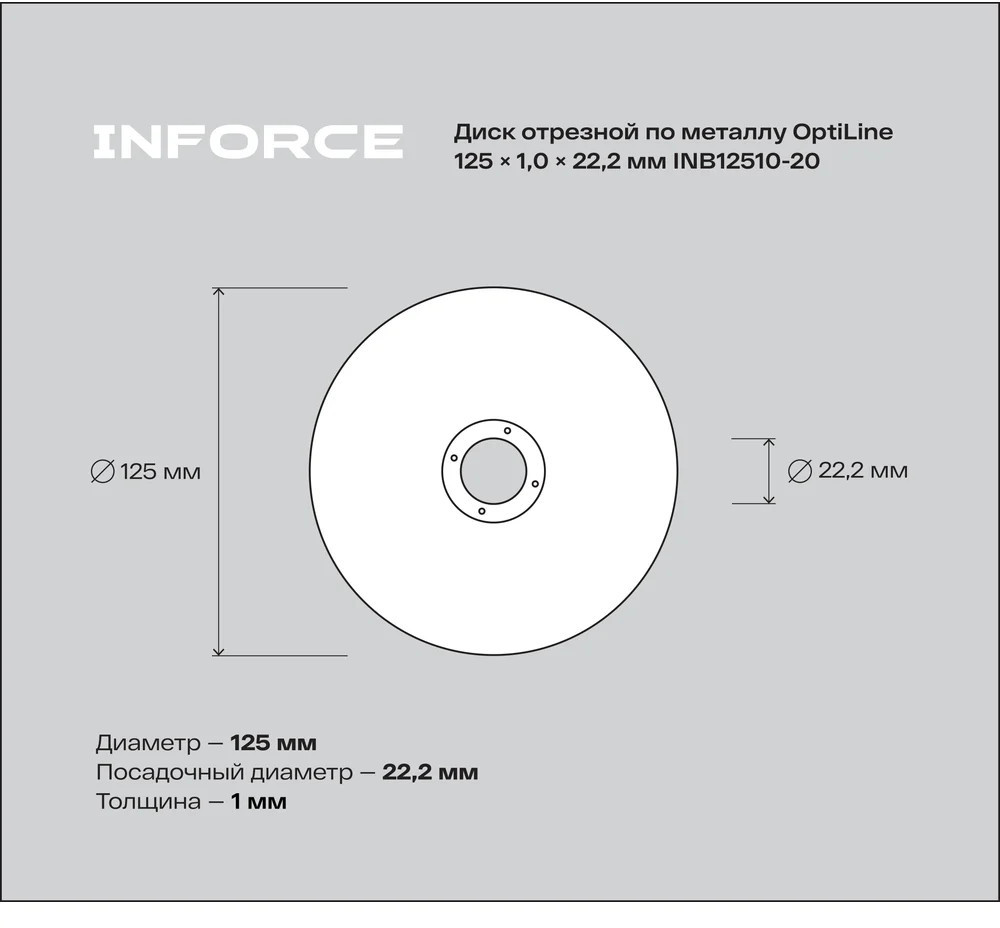 Диск отрезной по металлу OptiLine упаковка 20 шт. является сменным элементом для угловых шлифовальных машин. Применяется для резки металлических изделий. Диск обладает высокой производительностью и большим ресурсом работы. Оснастка изготавливается на современном оборудовании под строгим контролем качества.