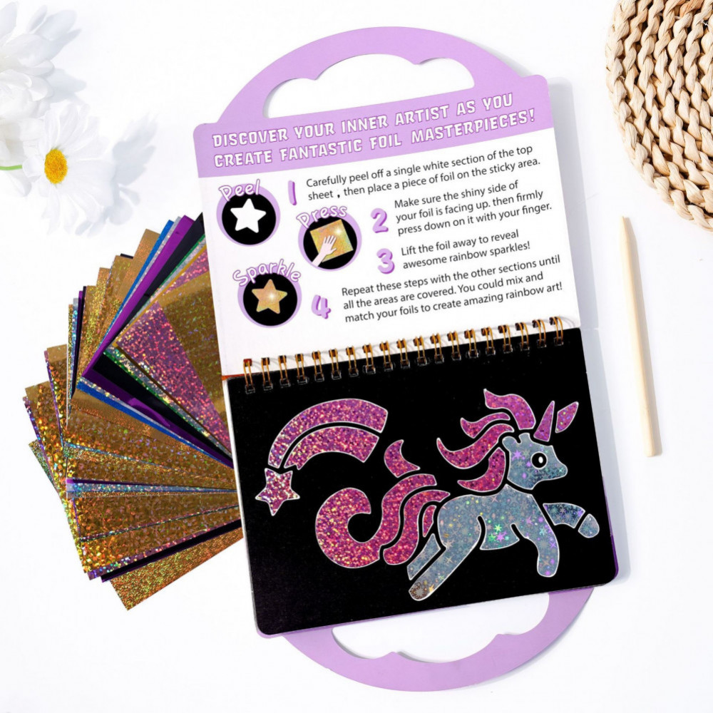 💳 Оплатить за товар можно при получении 🇰🇿 Есть бесплатная доставка по Казахстану от 1 дня 🎁 Копите бонусы с каждой покупки Набор для творчества «Аппликация фольгой» 2 в 1 — яркий и увлекательный набор для детского творчества, который помогает ребенку создавать красивые блестящие картинки с помощью цветной фольги. Ребенок легко украшает рисунки, прикладывая фольгу к специальным участкам, и картинка превращается в яркое сияющее произведение искусства. |