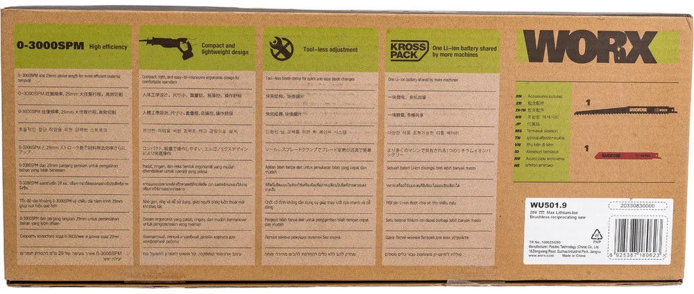 Worx Professional Пила сабельная ProfessionalВ данный момент этот товар отсутствует в продаже. Возможно, у нас найдется аналогичный или похожий товар здесь. Аккумуляторная сабельная пила WORX Professional бесщеточная, 20В, без АКБ и ЗУ WU501.9 — это профессиональное и эффективное решение для распила древесины, пластика, металла и большинства других материалов. Работая от аккумулятора 20В, пила обеспечивает длительность автономной работы и позволяет выполнять распил вдали от электросети. Гибкость настройки Модель оснащена регулируемой опорной плитой и позволяет обеспечить полный контроль над распилом благодаря переменной скорости. Сабельная пила поможет максимально точно подобрать режим для деликатной работы с твердыми и мягкими материалами. Быстрая замена лезвий Для смены лезвий не потребуется тратить много времени и использовать дополнительный инструмент. Система бесключевой замены оснастки гарантирует надежную фиксацию лезвий и позволяет быстро подготовиться к новой задаче. Удобство и безопасность Конструкция сабельной пилы предусматривает антивибрационную систему и рукоятку с резиновым покрытием, что предотвращает выскальзывание инструмента в ходе работы и обеспечивает комфорт даже при длительной эксплуатации. Для большей безопасности, пила оснащена блокировкой от случайного запуска. |