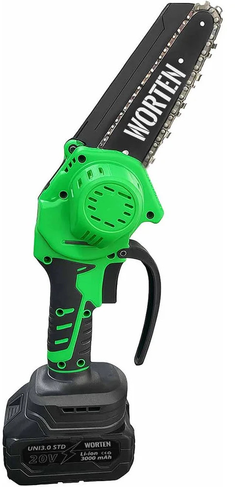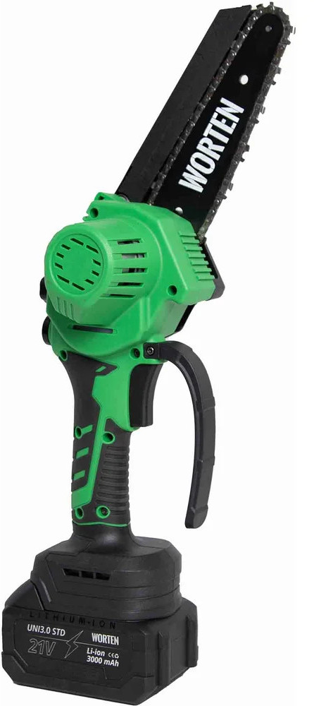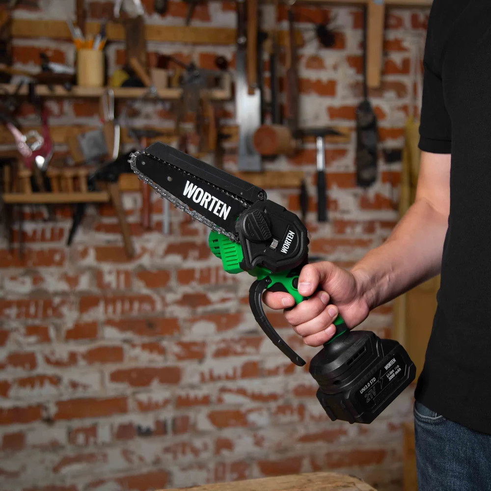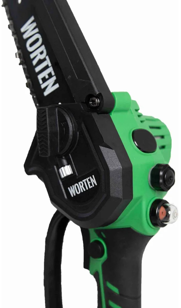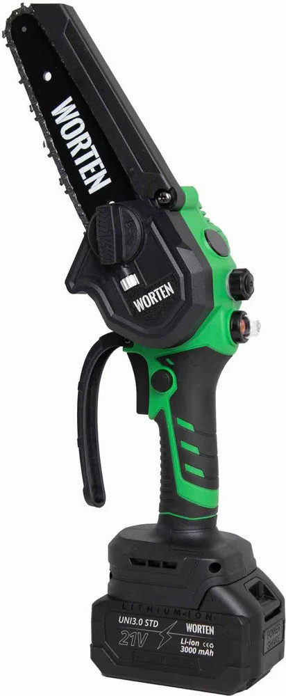 Пила цепная аккумуляторная WORTEN щеточная незаменима при работе в мастерской или в саду для распиливания различных материалов. Предназначена для пропилов в древесине и пластмассе. Инструмент работает от литий-ионного аккумулятора.