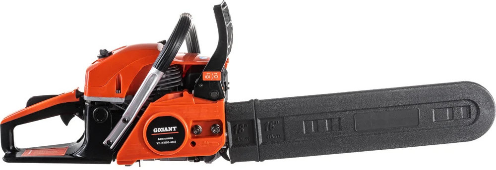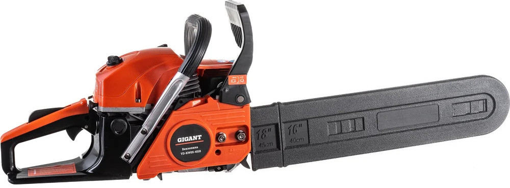 Gigant Бензопила YD-KW05-4518В данный момент этот товар отсутствует в продаже. Возможно, у нас найдется аналогичный или похожий товар здесь. Бензопила Gigant — мощный инструмент для бытовых нужд. Мощность двигателя 2.1 л.с. обеспечивает возможность распила мягкой древесины. Бензопила имеет шину длиной 45 см, поэтому она легкая, быстрая и не требовательна к мощности. Система легкого запуска обеспечивает комфортный завод бензопилы, пользователю не нужно рывком заводить инструмент, достаточно просто тянуть стартер. Форма корпуса и эргономичный дизайн облегчают работу с пилой в труднодоступных местах. Смазка цепи происходит автоматически. Легкий вес упрощает работу оператора. Виброзащита снижает нагрузку. Бензопила подойдет для бытовых нужд, будь то подрезка кустов или валка деревьев с небольшим диаметром ствола. |