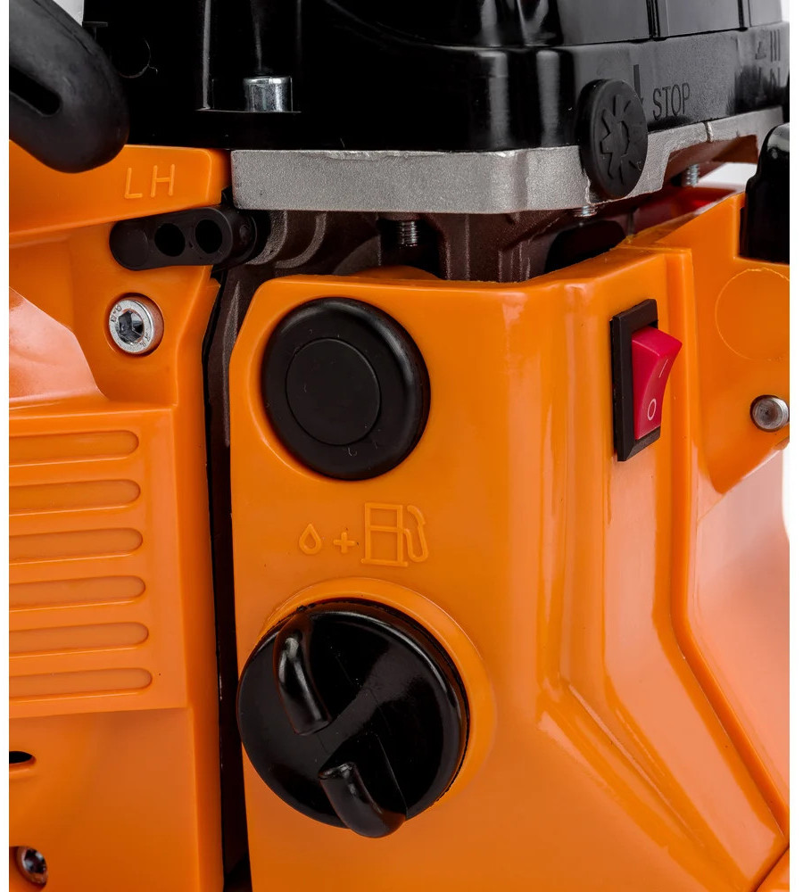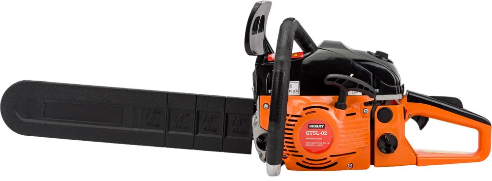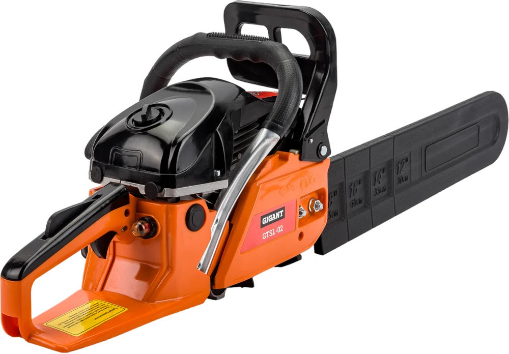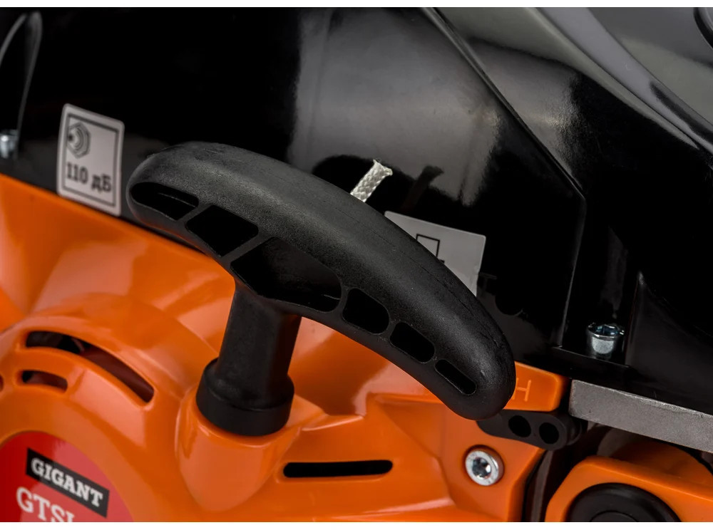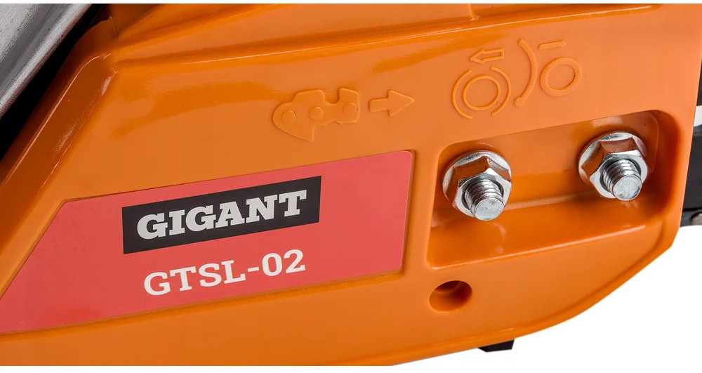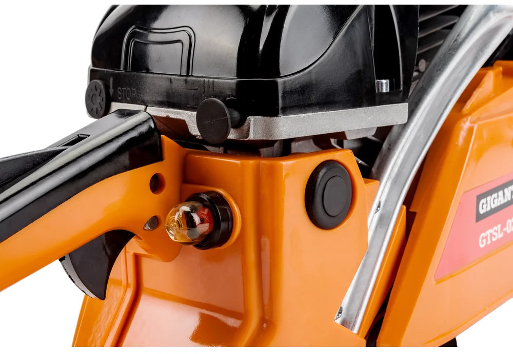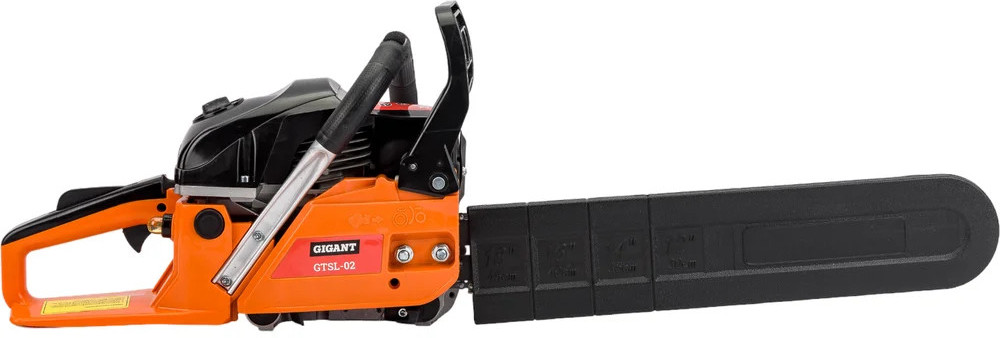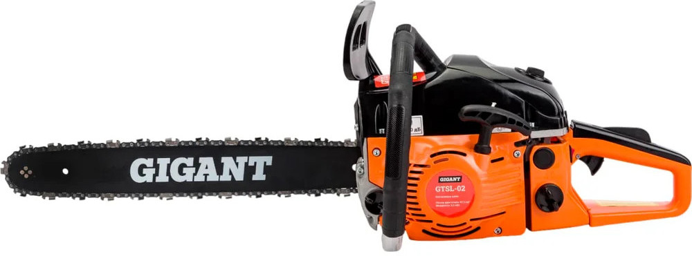 Бензопила Gigant GTSL-02 — мощный инструмент для бытовых нужд. Задняя рукоятка и дополнительная рукоятка гарантируют полный контроль над инструментом. Безопасная работа. При нажатии на передний упор срабатывает тормоз и пильная цепь моментально останавливается. Праймер (насос для подкачки топлива) облегчает запуск холодного двигателя.