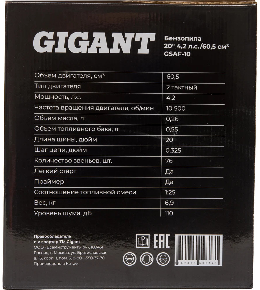 Бензопила Gigant 20″ 4.2 л.с./60.5 см3 GSAF-10 предназначена для валки и распиловки стволов деревьев большого диаметра. Оснащена антивибрационной системой для уменьшения влияния на здоровье. Легкий доступ к воздушному фильтру и свече зажигания позволяет проводить регулярное техническое обслуживание самостоятельно. Возможность регулировки подачи смазки для разных задач и материалов.