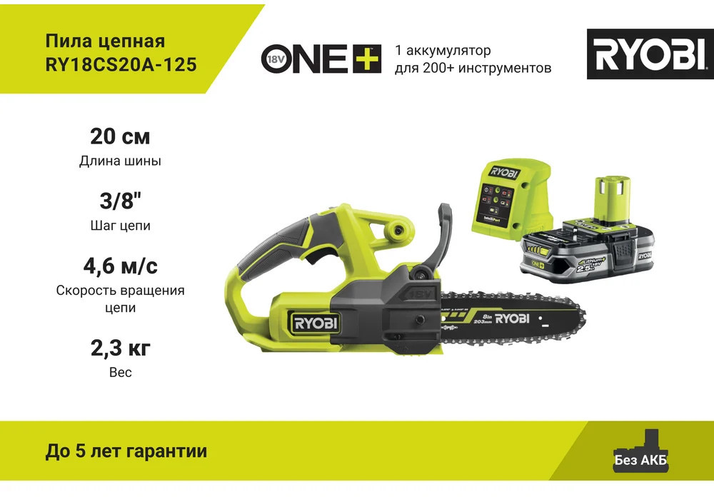 Ryobi Пила цепная RY18CS20A-125В данный момент этот товар отсутствует в продаже. Возможно, у нас найдется аналогичный или похожий товар здесь. Цепная пила Ryobi ONE+ 18В RY18CS20A-125 5133005415 оснащена 20 см шиной, благодаря чему идеально подходит для резки небольших бревен для костра, обрезки ветвей и сучьев. 20 см пильная цепь, благодаря большому количеству режущих зубцов, обеспечивает чистый рез, снижает вибрацию и риск отдачи. Ручная система смазки цепи максимально упрощает эксплуатацию и обслуживание инструмента. Просто нанесите смазку на цепь и шину. Легкая, компактная и маневренная конструкция позволяет работать аккуратно и удобна в транспортировке. |