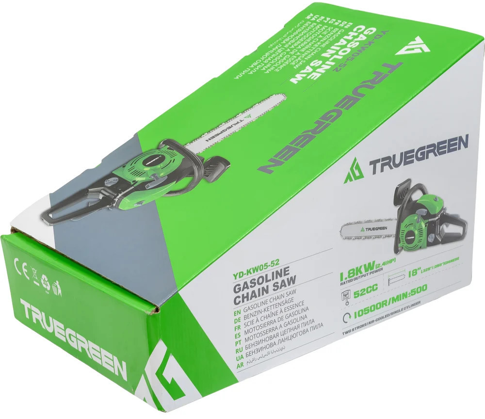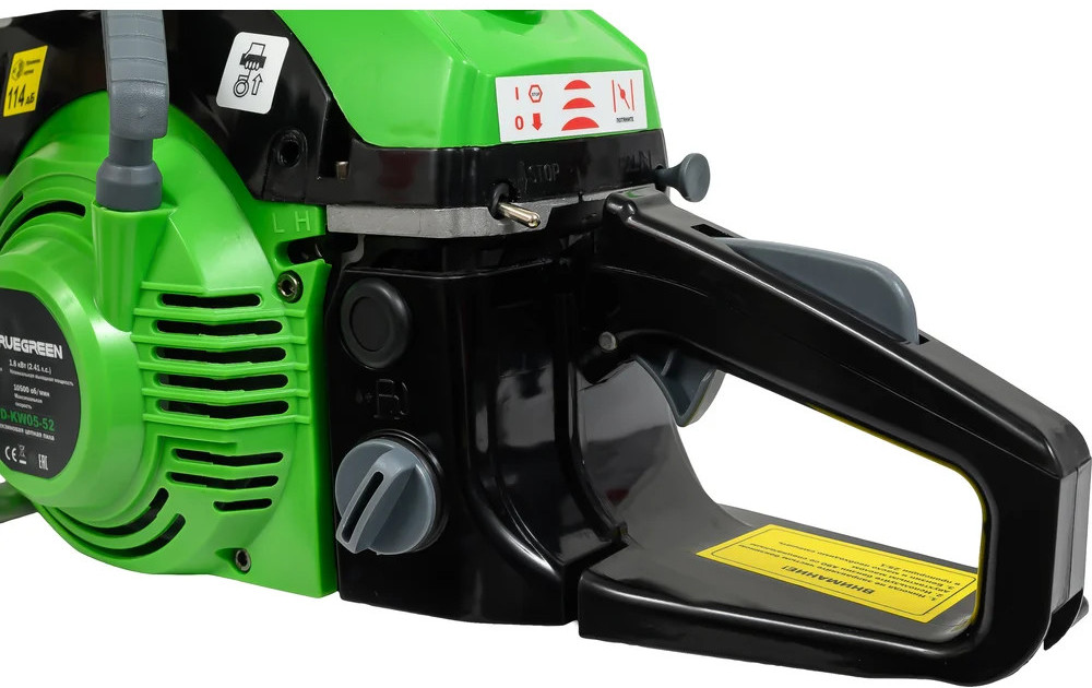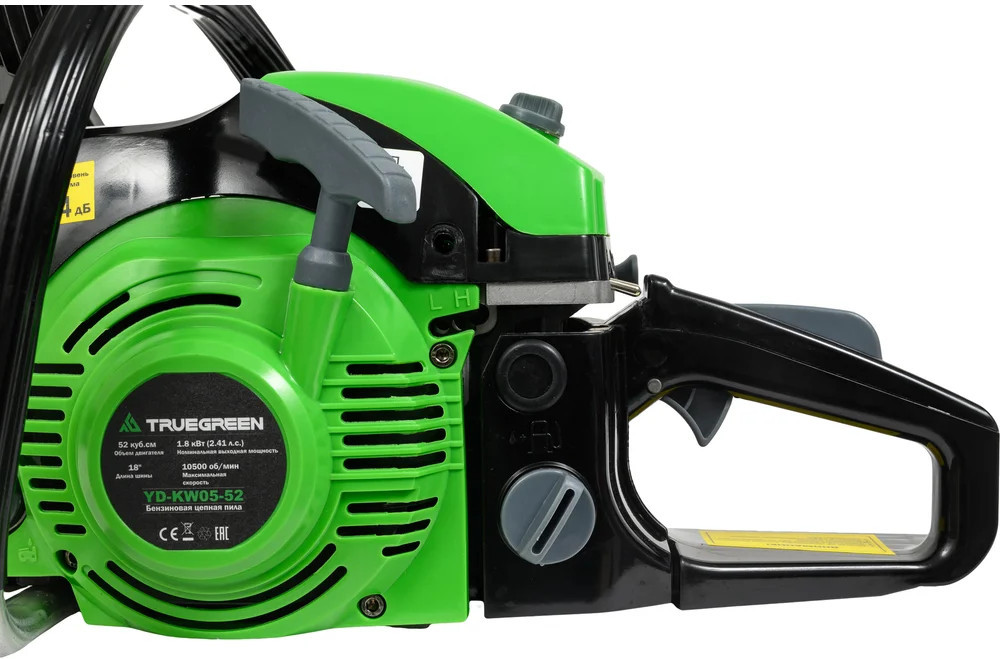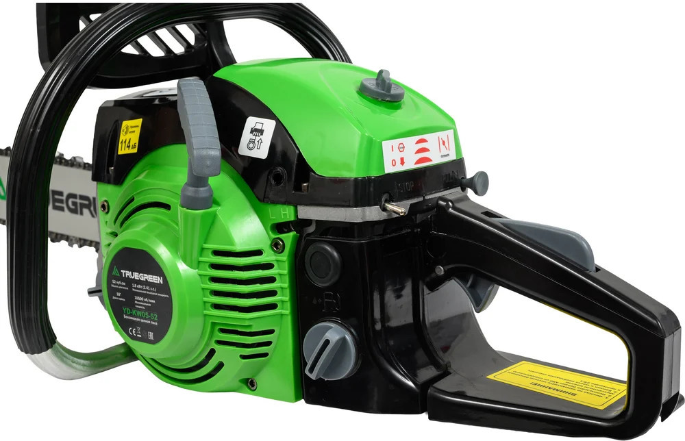Truegreen Бензопила YD-KW05-52В данный момент этот товар отсутствует в продаже. Возможно, у нас найдется аналогичный или похожий товар здесь. Бензопила Truegreen YD-KW05-52 представляет собой надежный инструмент, обеспечивающий эффективную работу благодаря мощности двигателя в 1.8 кВт. Она оснащена двухтактным двигателем, что делает ее подходящей для различных задач в саду или на даче. Длина шины в 18 дюймов и шаг цепи 0.325 дюйма позволяют легко справляться с пилением древесины разной толщины. Пила имеет емкость топливного бака 0.550 литра и масляного бака 0.260 литра, что обеспечивает длительное время работы без частых дозаправок. Легкий запуск и праймер облегчают начало работы, а возможность работы одной рукой делает инструмент удобным в использовании. |