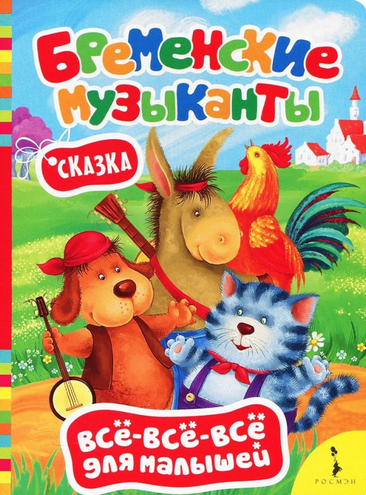 Бременские музыкантыВ данный момент этот товар отсутствует в продаже. Возможно, у нас найдется аналогичный или похожий товар здесь. Серия: Всё-всё-всё для малышей Книги для малышей от года, развивают образное мышление, пробуждают любознательность и прививают любовь к чтению. |