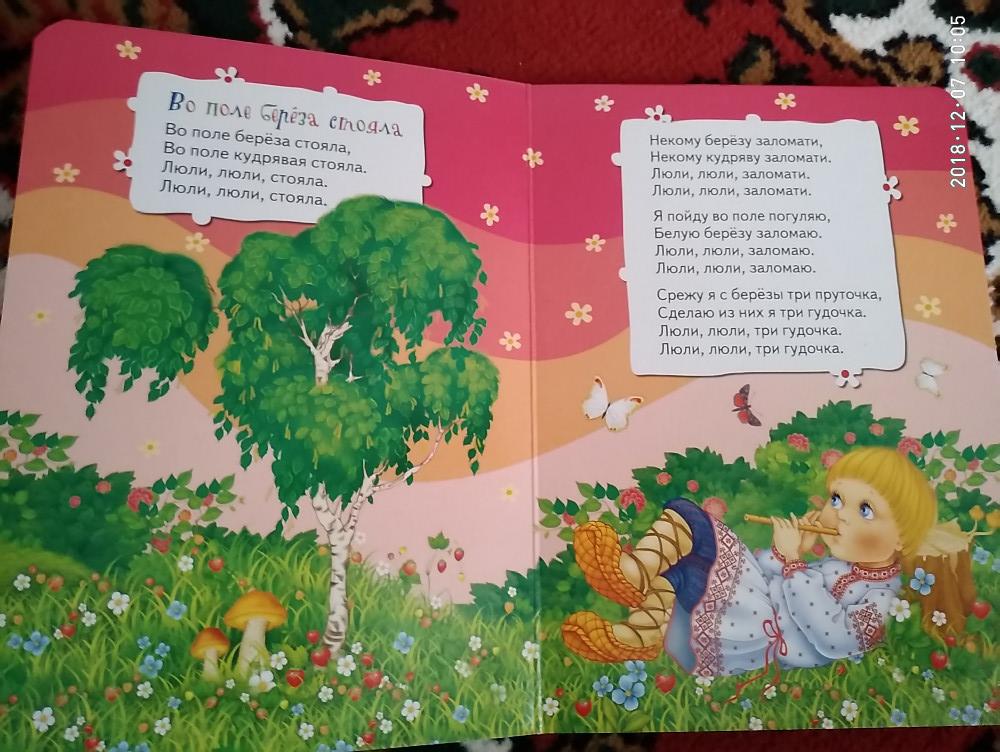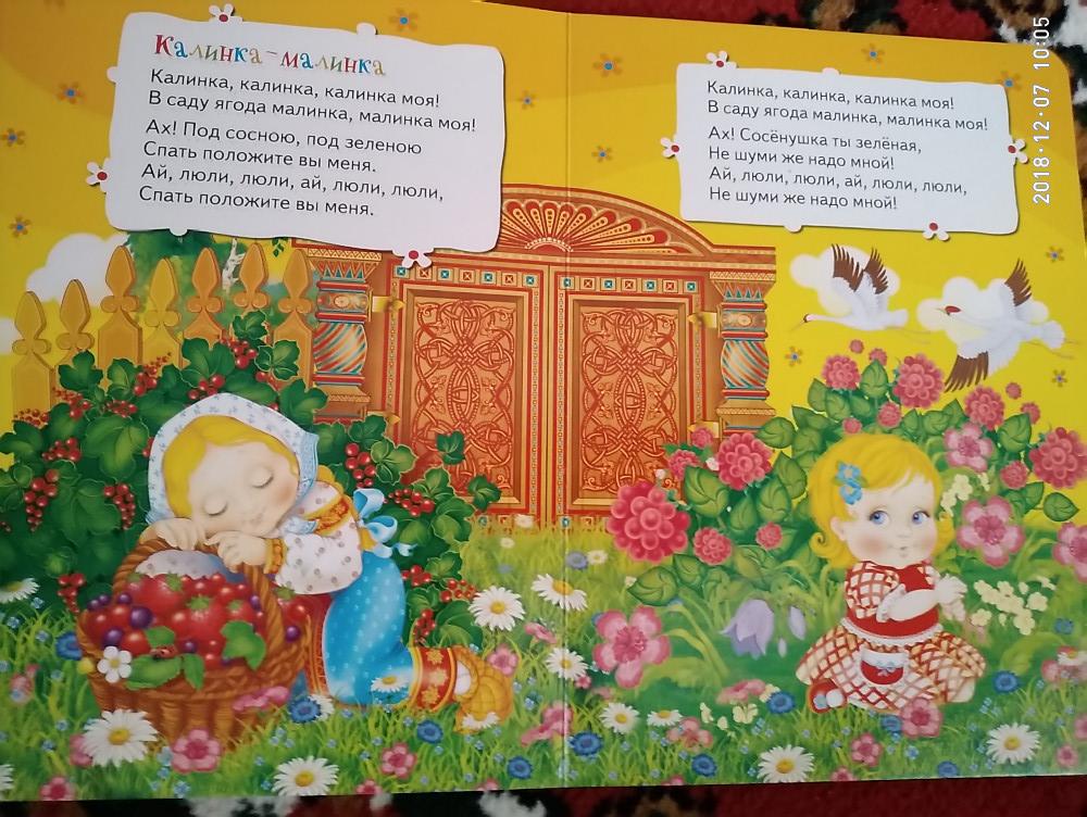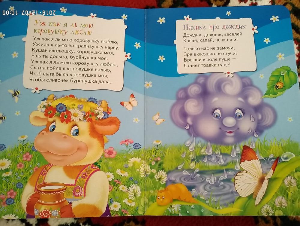 Красивые иллюстрации, плотные страницы. Сыну очень нравится подобная серия книг. В книге такие песни, как: Два веселых гуся; Во поле береза стояла; Калинка-малинка; Уж как я ль мою коровушку люблю; Песенка про дождик.