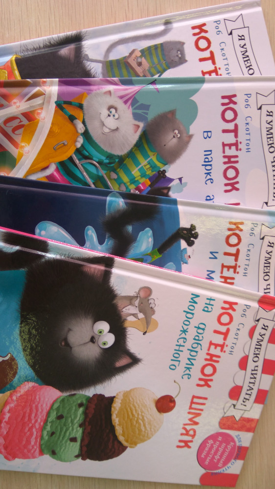 Взяла 2 книжки из этой серии для чтения трехлетней дочке. Она сразу же просто влюбилась в котенка Шмяка! Читаем ей всей семьей по три раза в день. Особенно умиляет, когда старшая дочка читает младшей, меняя интонации в голосе и строя рожицы. Легкие и немного поучительные истории про котенка. Буду заказывать все книги из этой серии