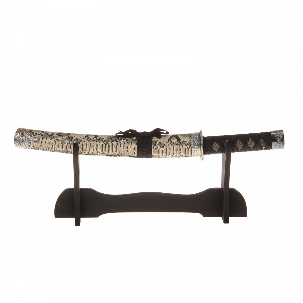 Нож танто сувенирный на подставке, белые ножны, под змею+234